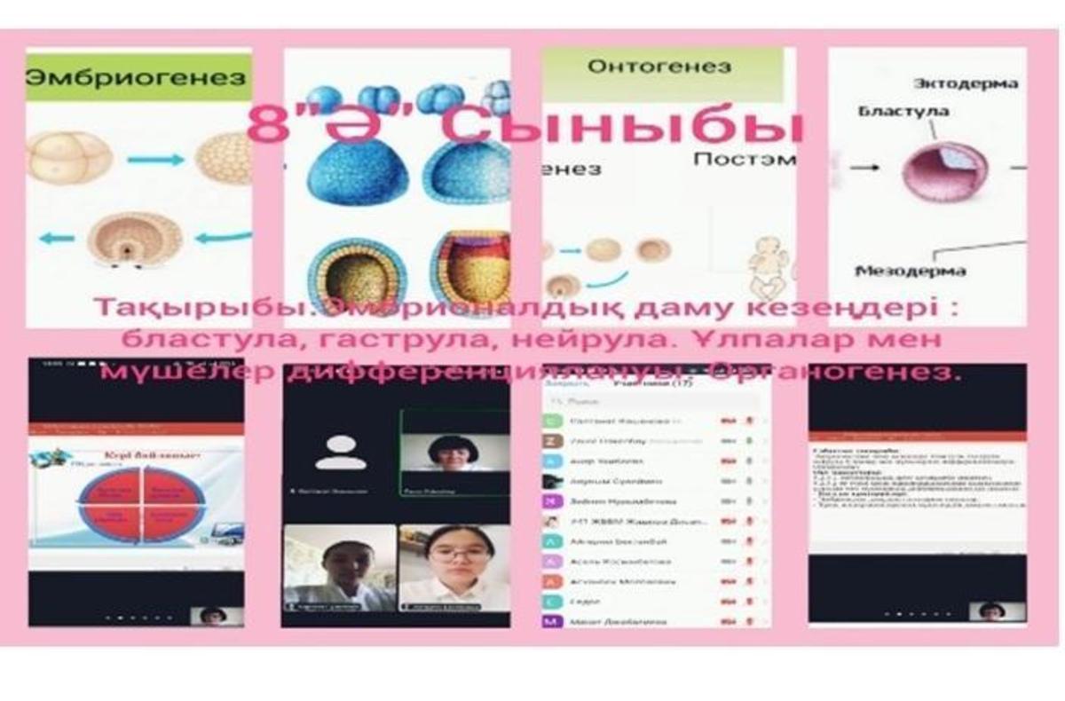 А.Қарсақбаев атындағы № 41 ЖББМ жаратылыстану-ғылыми пән бірлестігінің 12-22.04.2021ж аралығындағы «Жаңартылған біліммен болашаққа» атты онкүндігінің қашықтықтан өткізу жоспарына сәйкес 2021жылдың 15 сәуірде «Эмбрионалдық даму кезеңдер: бластула, гаструла, нейрула. Органогенез» тақырыбында 8 «Ә» сынып оқушылар арасында ашық сабақ өтілді. Сабақты биология пәні мұғалімі Өскенбай Зауре Азаматқызы өткізді.