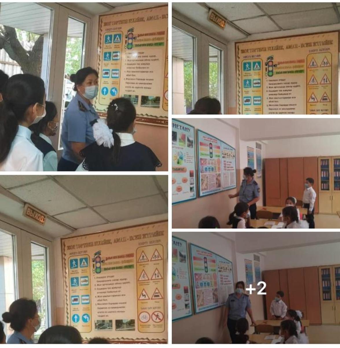 17.09.2021 ж Алатау ауданы ПБ ЖПҚБ ЮПБ полиция аға капитаны А.Мурзалиева А.Қарсақбаев атындағы №41ЖББ мектепте 1-8 сыныптарымен