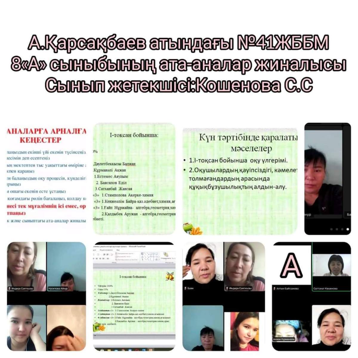 А.Қарсақбаев атындағы №41 ЖББМ 2020-2021 оқу жылында 05 қараша 07 қараша аралығында 1-11 сынып оқушылары ата-аналарына жиналыс өтті.
