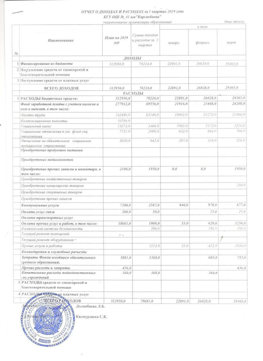Доход расход 1 квартал 2019год