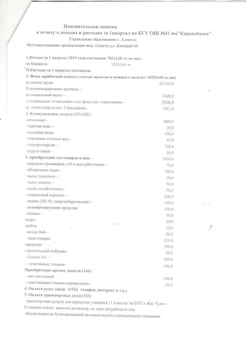 2017 жылғы 1 тоқсандағы кірістер мен шығыстар туралы есеп