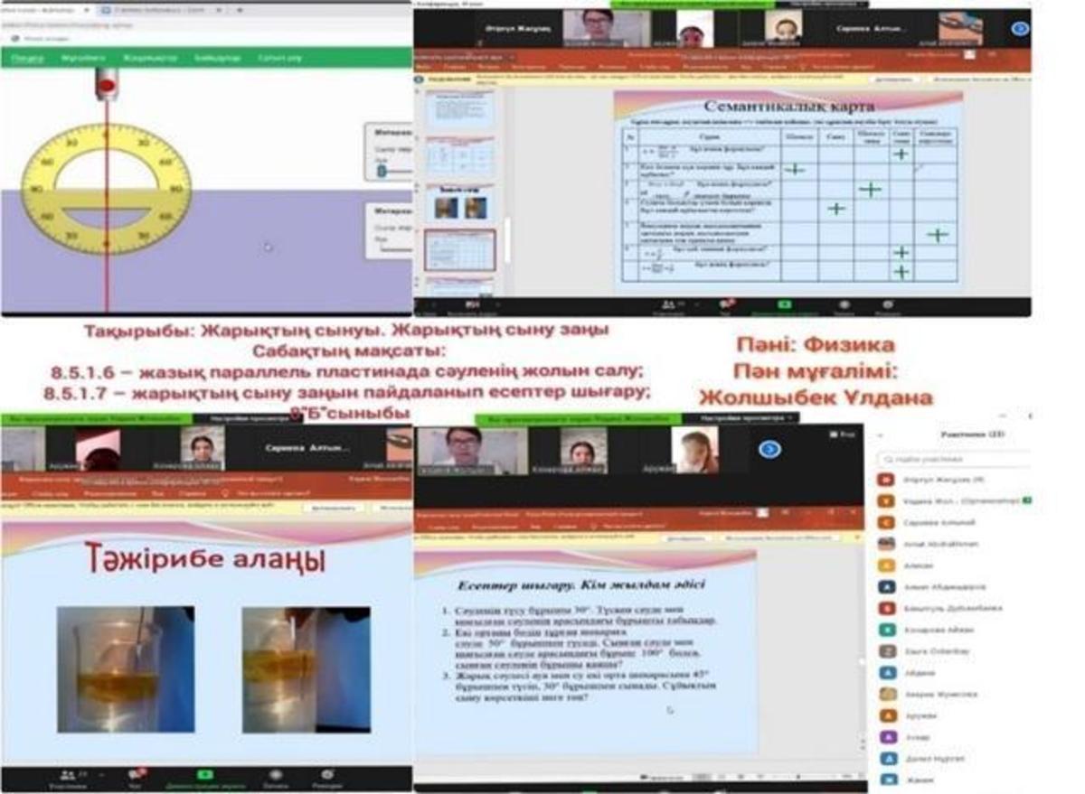 А.Қарсақбаев атындағы № 41 ЖББМ жаратылыстану-ғылыми пән бірлестігінің 12-22.04.2021ж аралығындағы «Жаңартылған біліммен болашаққа» атты онкүндігінің қашықтықтан өткізу жоспарына сәйкес 2021жылдың 15 сәуірде «Жарықтың сынуы. Жарықтың сыну заңы» тақырыбында 8 « Б» сынып оқушылар арасында физика пәні мұғалімі Жолшыбек Ұлдана ашық сабақ өткізді.
