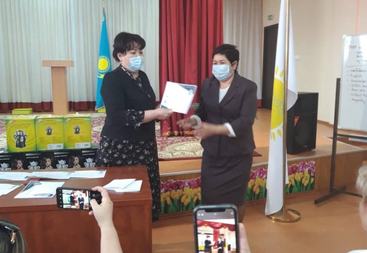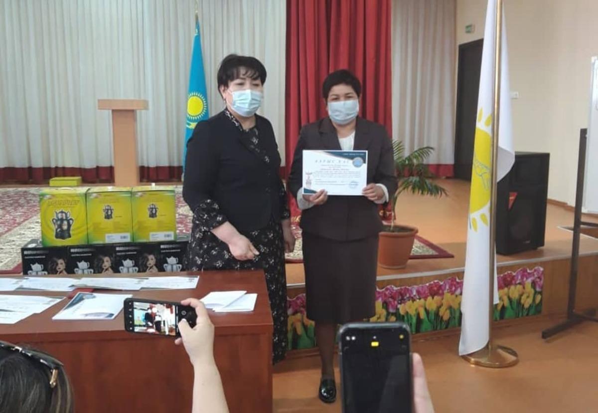 Аудандық "Алматы қалалық Әкімінің арнайы гранты" байқауына қатысып, кәсіби шеберлігін таныта білген ІІІ орын иегері А.Қарсақбаев атындағы №41 жалпы білім беретін мектептің химия пәні мұғалімі Джабалиева Манат Ахановна марапатталды.