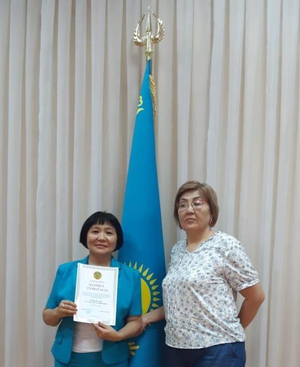 Қазақстан Республикасының Білім және ғылым министрі А.Аймағанбетов білім беру жүйесін дамытуға және өскелең ұрпаққа тәрбие мен білім берудегі табыстары үшін мектебіміздің қазақ тілі мен әдебиетінен пәнінің мұғалімі Байқожаева Тілеулес Мұқамырқызын құ