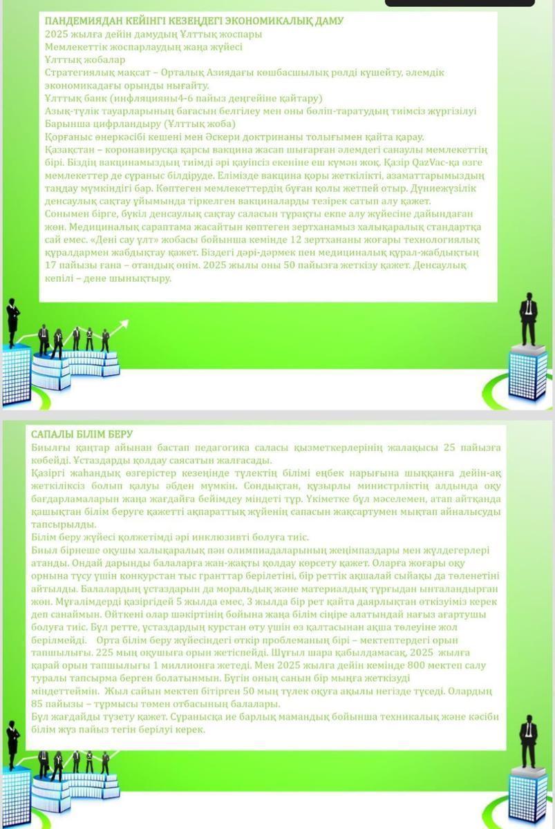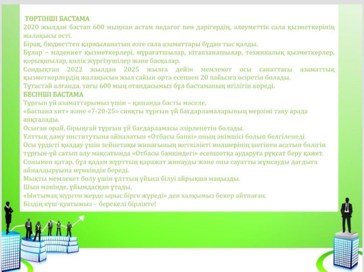 Қ.К.Тоқаевтың Қазақстан халқына жолдаған “Халық бірлігі және жүйелі реформалар - ел өркендеуінің берік негізі” атты жолдауы