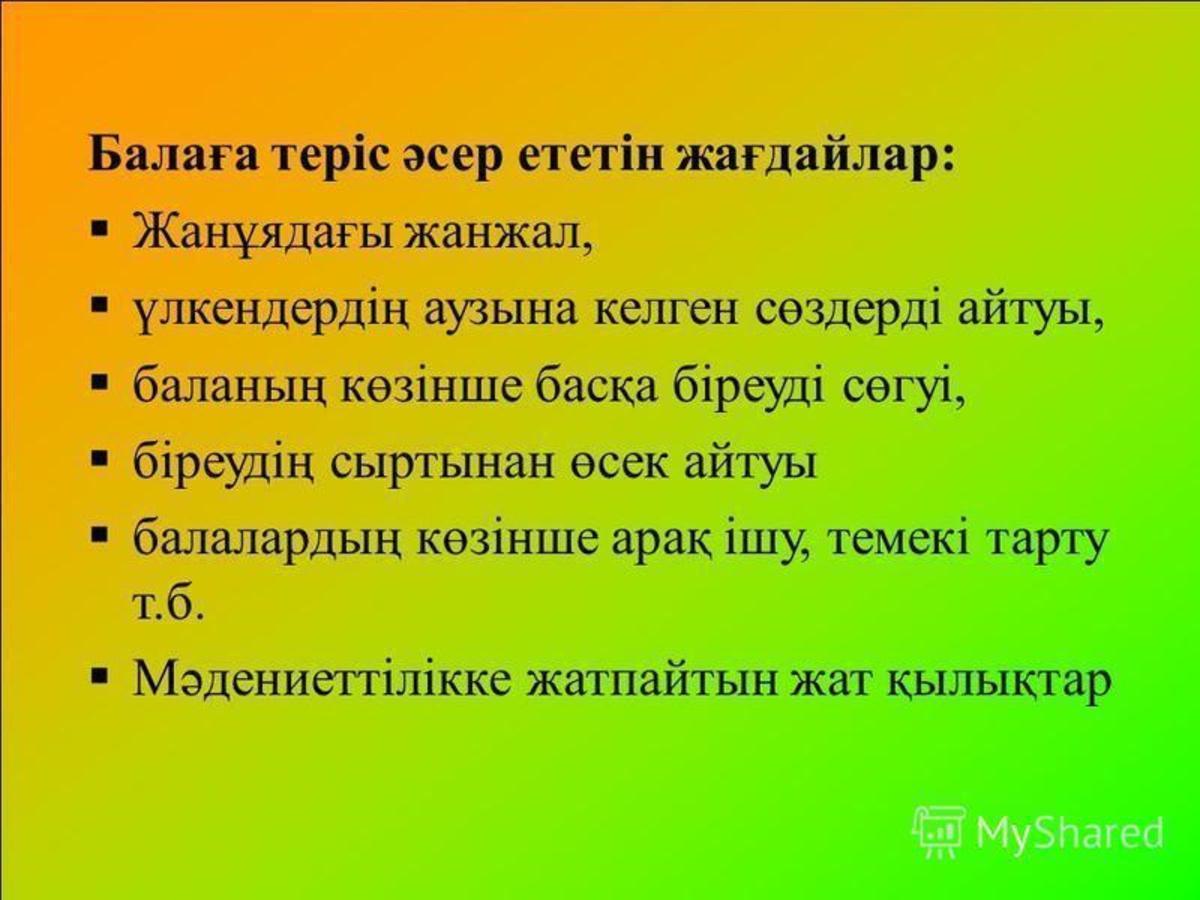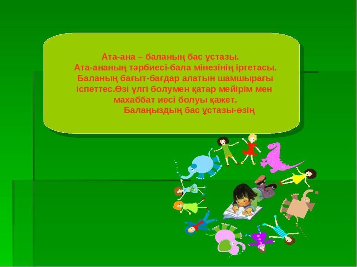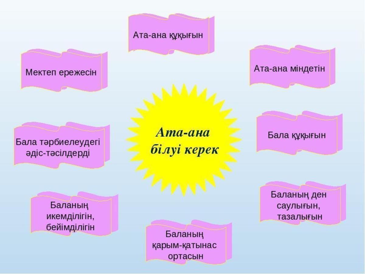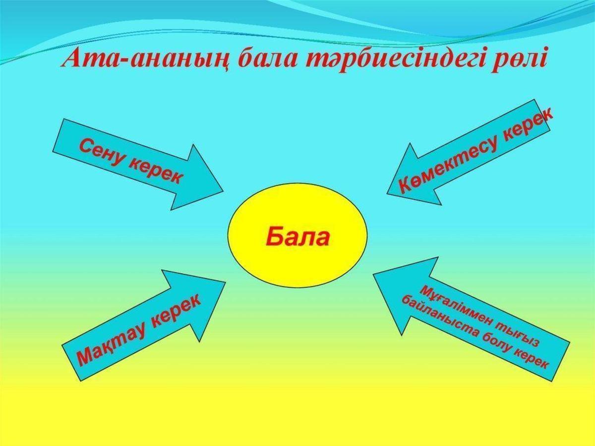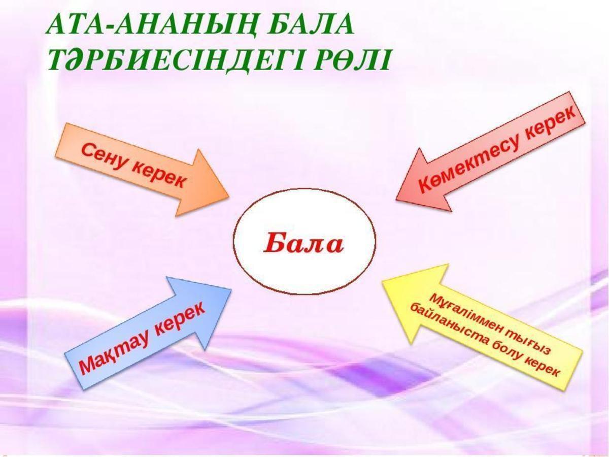 Мақсаты: қазіргі кездегі баланың дамуына, жеке тұлға болып қалыптасуына ата-ана тәрбиесінің әдіс-тәсілдерін жетілдіре отырып, тиімді қарым-қатынас орнату.