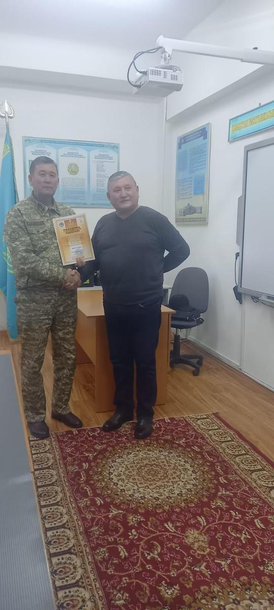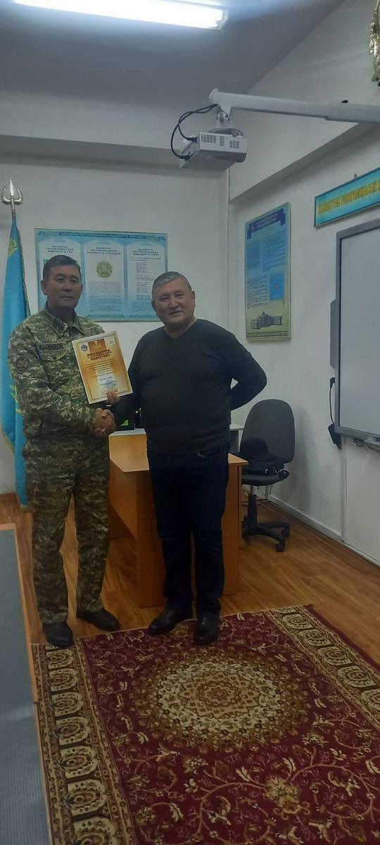 "Алғашқы әскери және технологиялық дайындық пәнінің жаңартылған мазмұнда білім берілуі мен оқу-материалдық базасының жабдықталуы" бойынша өткен қалалық байқауда "Үздік құжаттар топтамасы" аталымының жүлдегері А. Қарсақбаев атындағы №41 ЖББМ алғашқы әскери пән мұғалімі Мырзахметұлы Фазылжан марапатталды.