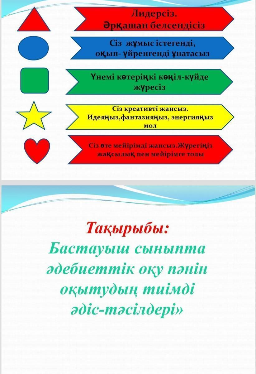 "Бастауыш сыныпта әдебиеттік оқу пәнін оқытудың тиімді әдіс-тәсілдері" тақырыбында шеберлік сабағы