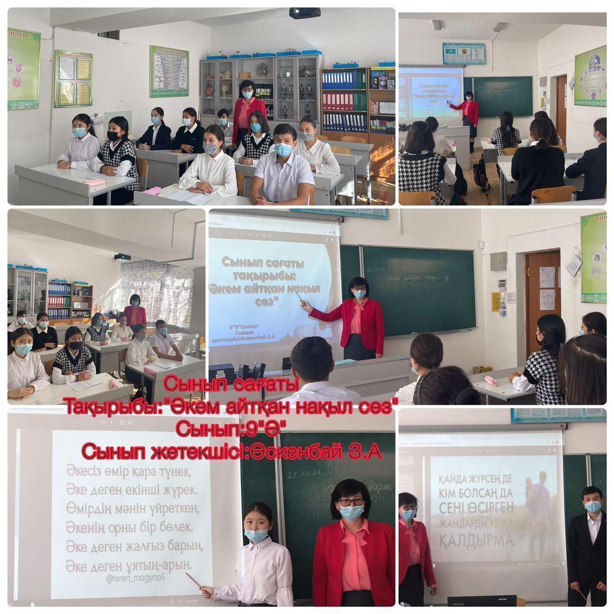 Мектебімізде 1-11 сынып оқушыларына "Әкем айтқан нақыл сөз" атты тақырыпта сынып сағаты өтті.