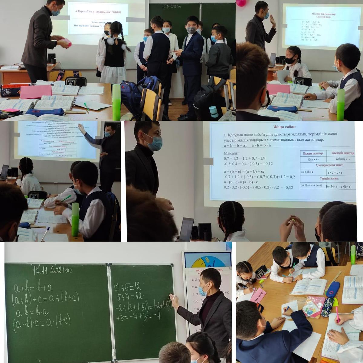 А.Қарсақбаев атындағы №41 ЖББМ 2021жылдың 17 қараша күні жас маман -математика пәнінің мұғалімі Кайпыев Асханбек "Рационал сандарды қосу мен көбейтудің ауыстырымдылық және терімділік қасиеттері" тақырыбында ашық сабақ өтті