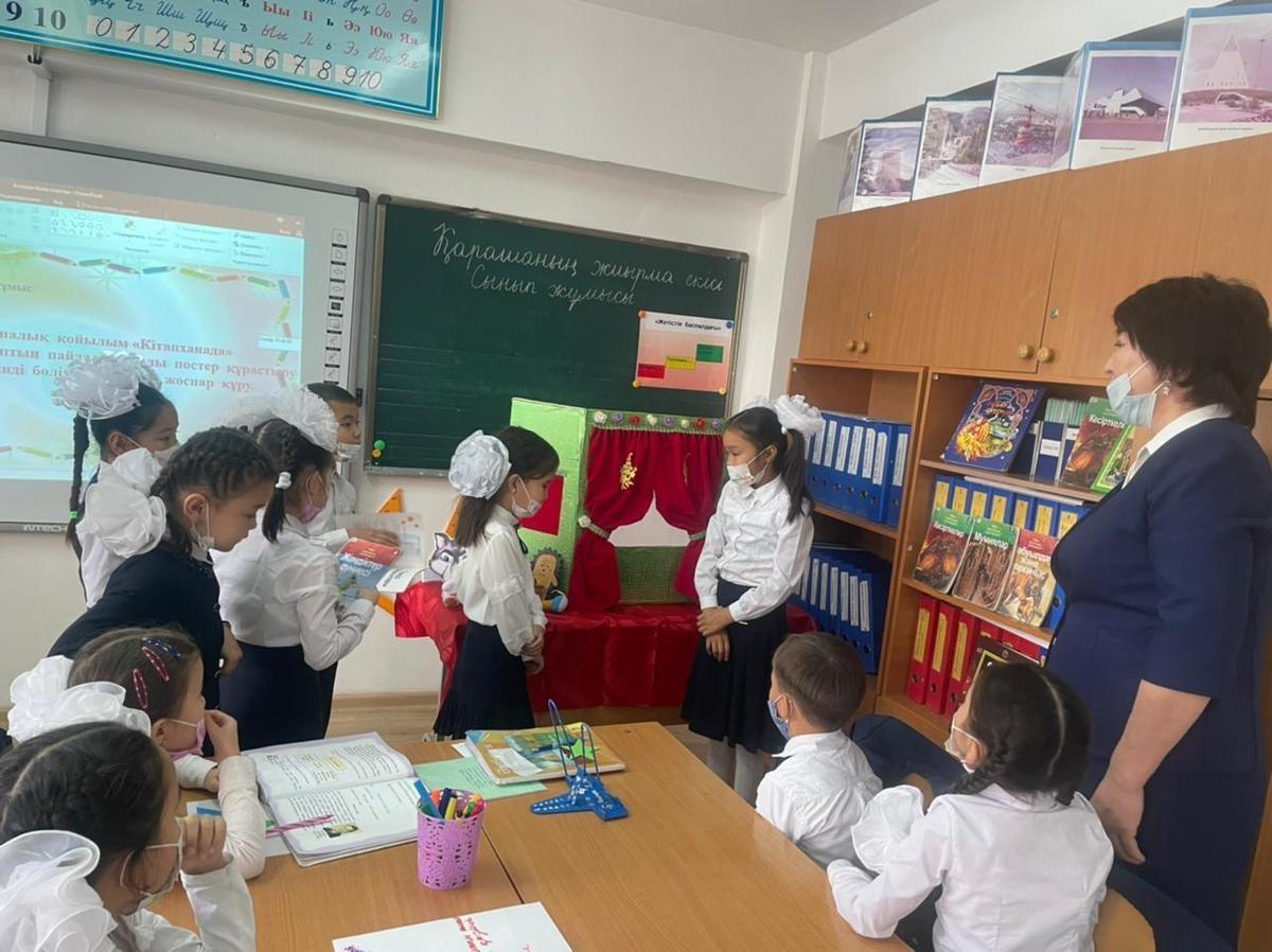 А.Қарсақбаев атындағы 41 ЖББ мектептің 2 “Б” сынында әдебиеттік оқудан Құрмангалиева Гүлнара М.Иманжановтың “Кітап” тақырыбында ашық сабақ өткізді.