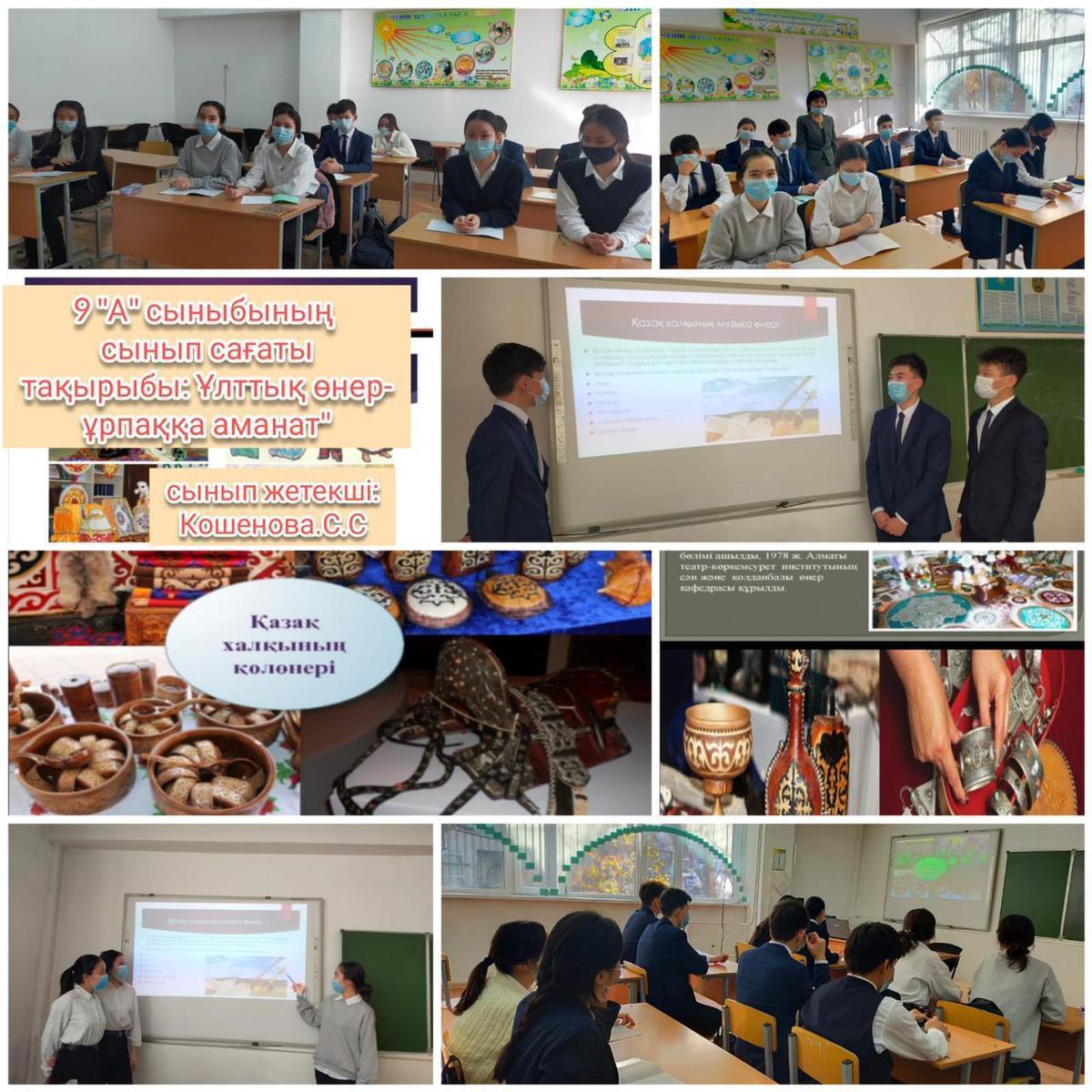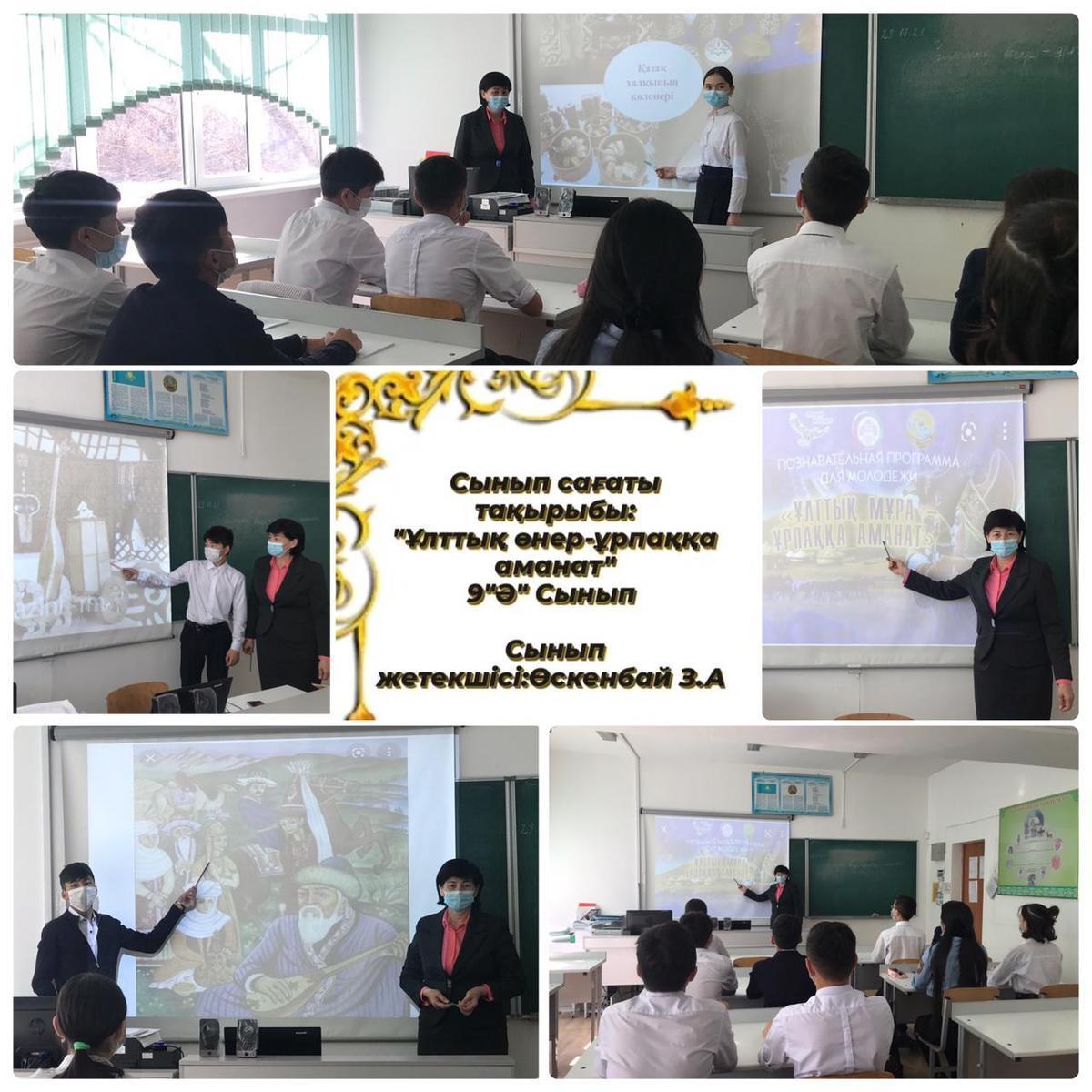 23.11.2021 жылы мектебімізде 1-11 сыныптар арасында “Ұлттық өнер-ұрпаққа аманат” тақырыбында тәрбие сағаттары өткізілді.