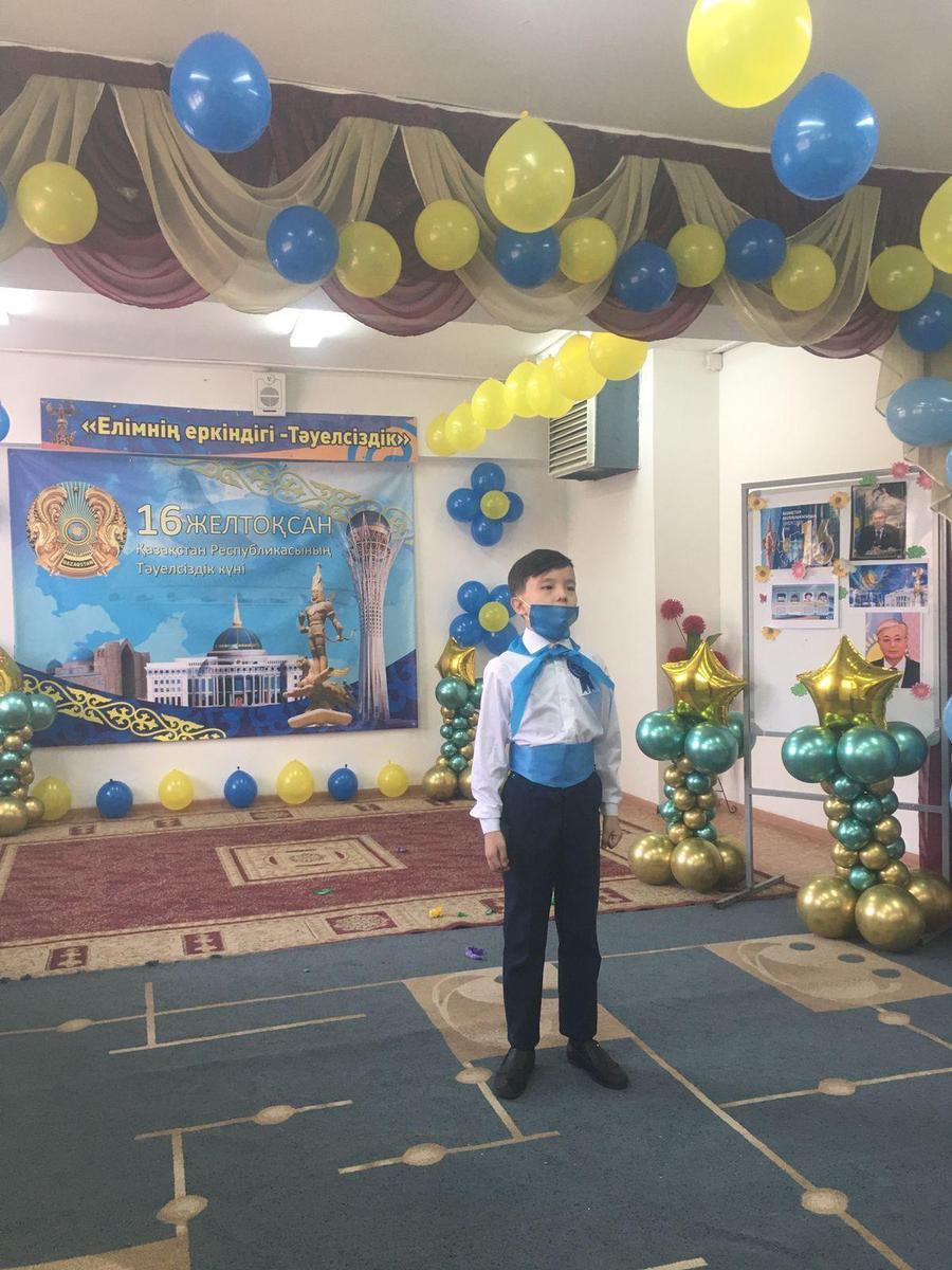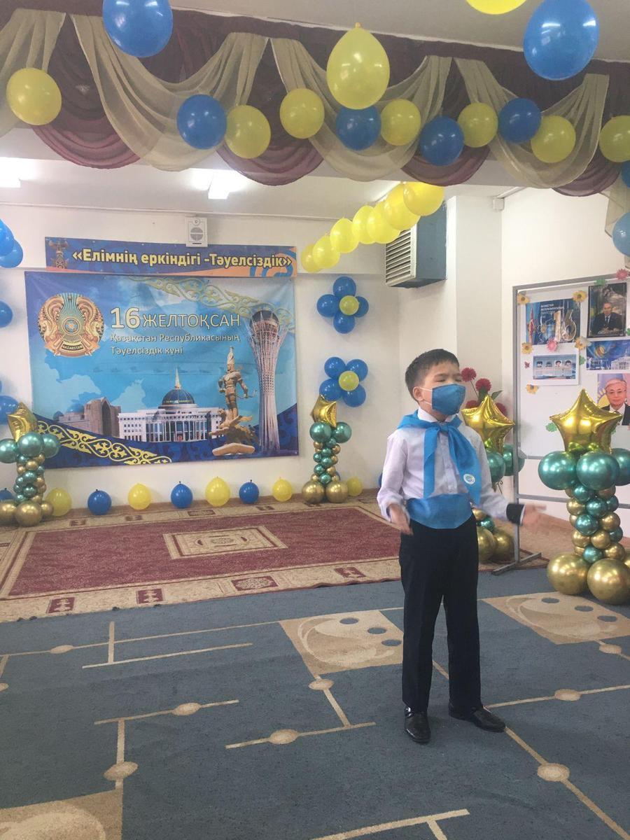 13.12.21ж.А.Қарсақбаев атындағы 41ЖББ мектептің 2 «Г» сыныбында Бабазова Зейнеп «Елімнің еркіндігі -Тәуелсіздік» тақырыбында сынып сағатын өтті.