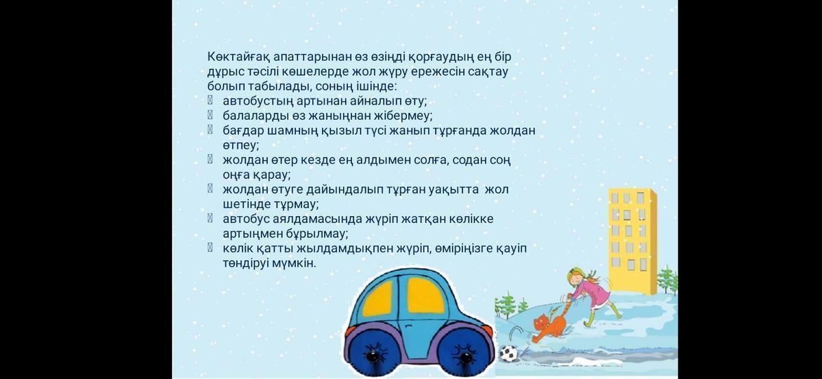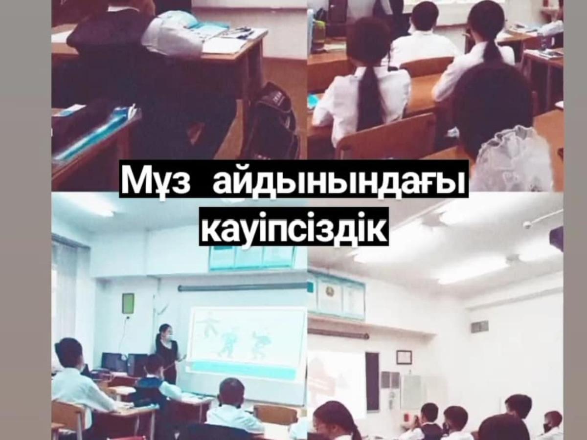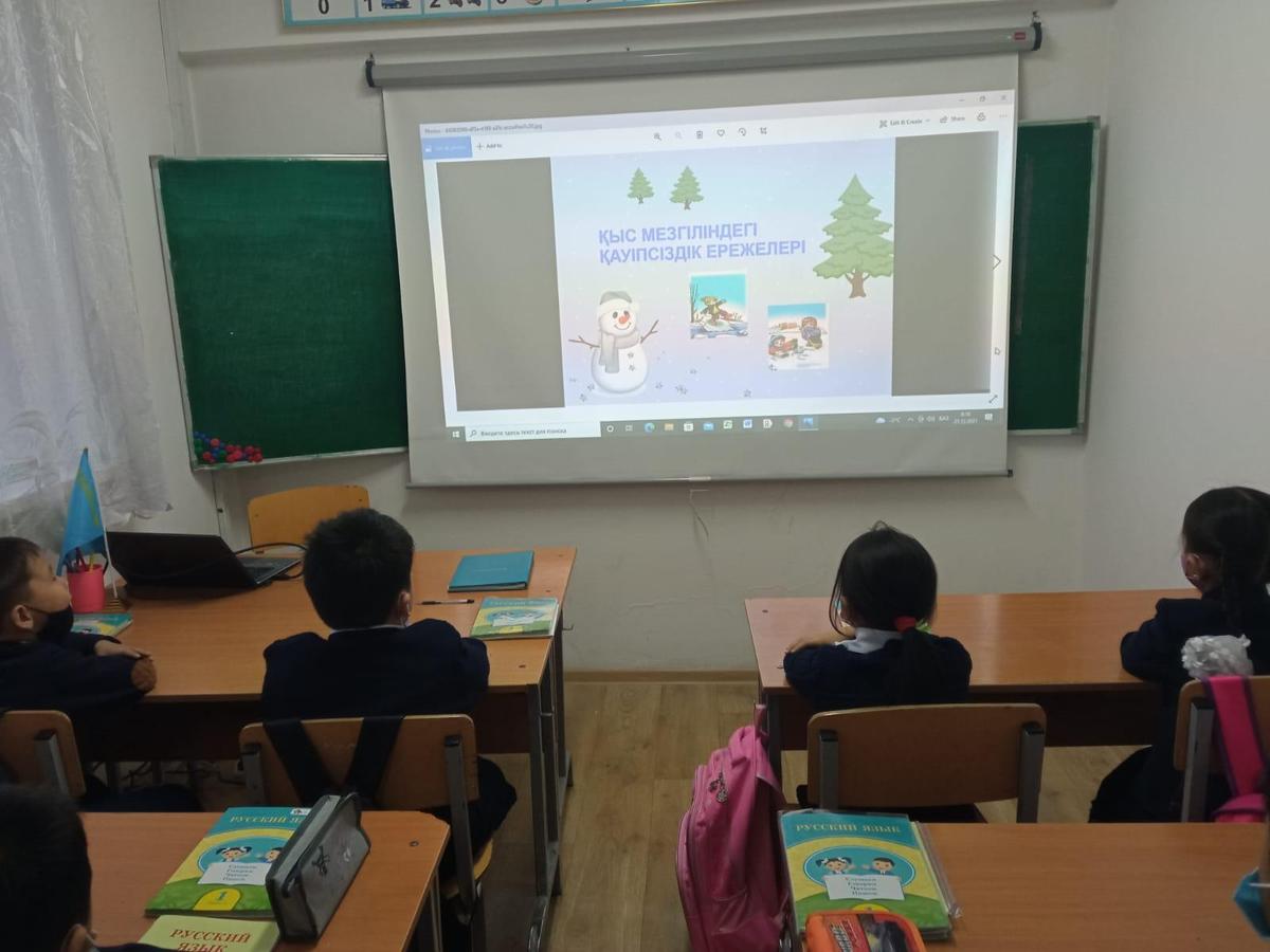 А.Қарсақбаев атындағы №41 ЖББМ- е 5-6 сынып оқушыларына 21.12.2021 ж күні "Мұздағы қауіпсіздік" тақырыбында түсіндірмелі жұмыстар жүргізілді.