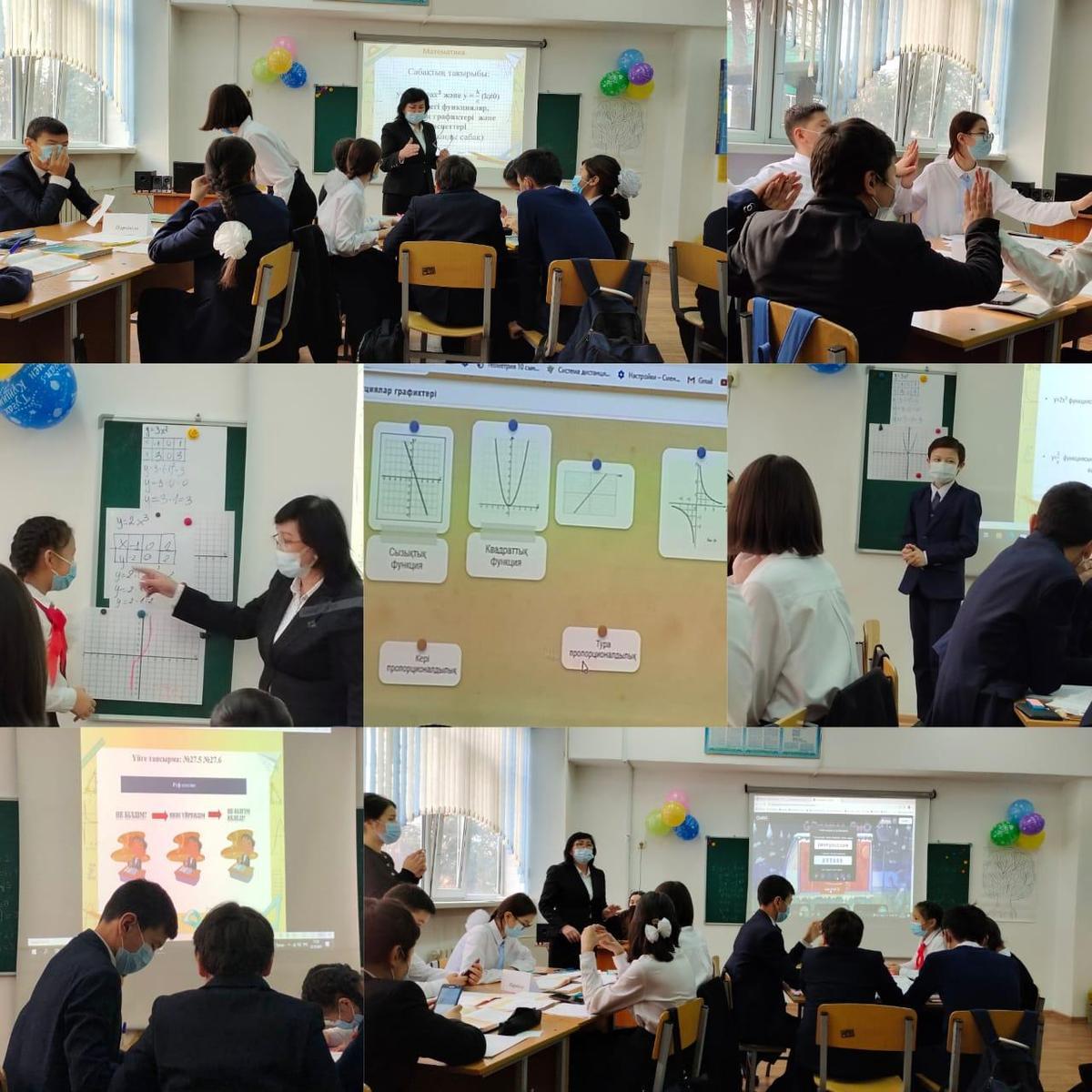 А.Қарсақбаев атындағы №41 ЖББМ 2021 жылдың 22 желтоқсан күні тәлімгер - математика пәні мұғалімі Намангенова Нуржан Нургалиевна 7 "А" сыныбына " у=ах2, у=ах3 және у = к/х (k≠0) түріндегі функциялар, олардың графиктері және қасиеттері" (қорытынды сабақ) тақырыбында ашық сабақ өтті. Сабақтың мақсаты: функция ұғымын біледі, оның анықталу облысы мен мәндерінің жиынын анықтайды;