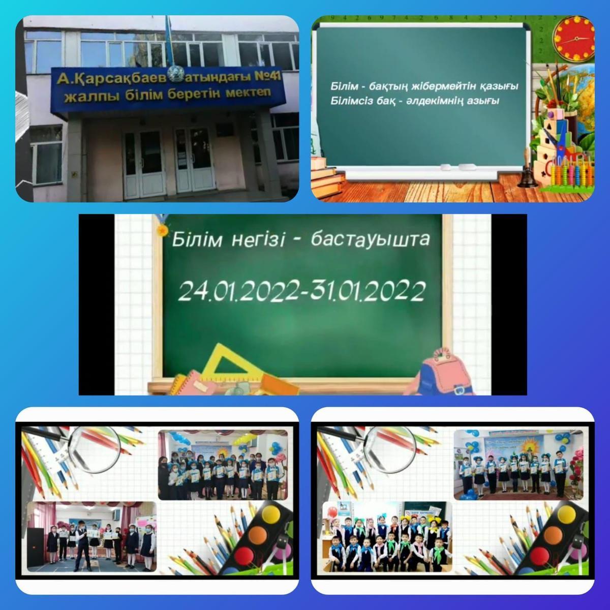 24.12.22ж.А.Қарсақбаев атындағы 41 ЖББ мектептің 1,4- сыныптар арасында «Білім негізі -бастауышта» атты апталық басталды. Мақсаты:Мұғалімдердің сабақтарында жаңартылған білім беру мазмұны бойынша,оқытудағы жаңа әдіс-тәсілдерді пайдалана отырып,тәжірибе алмасуы.