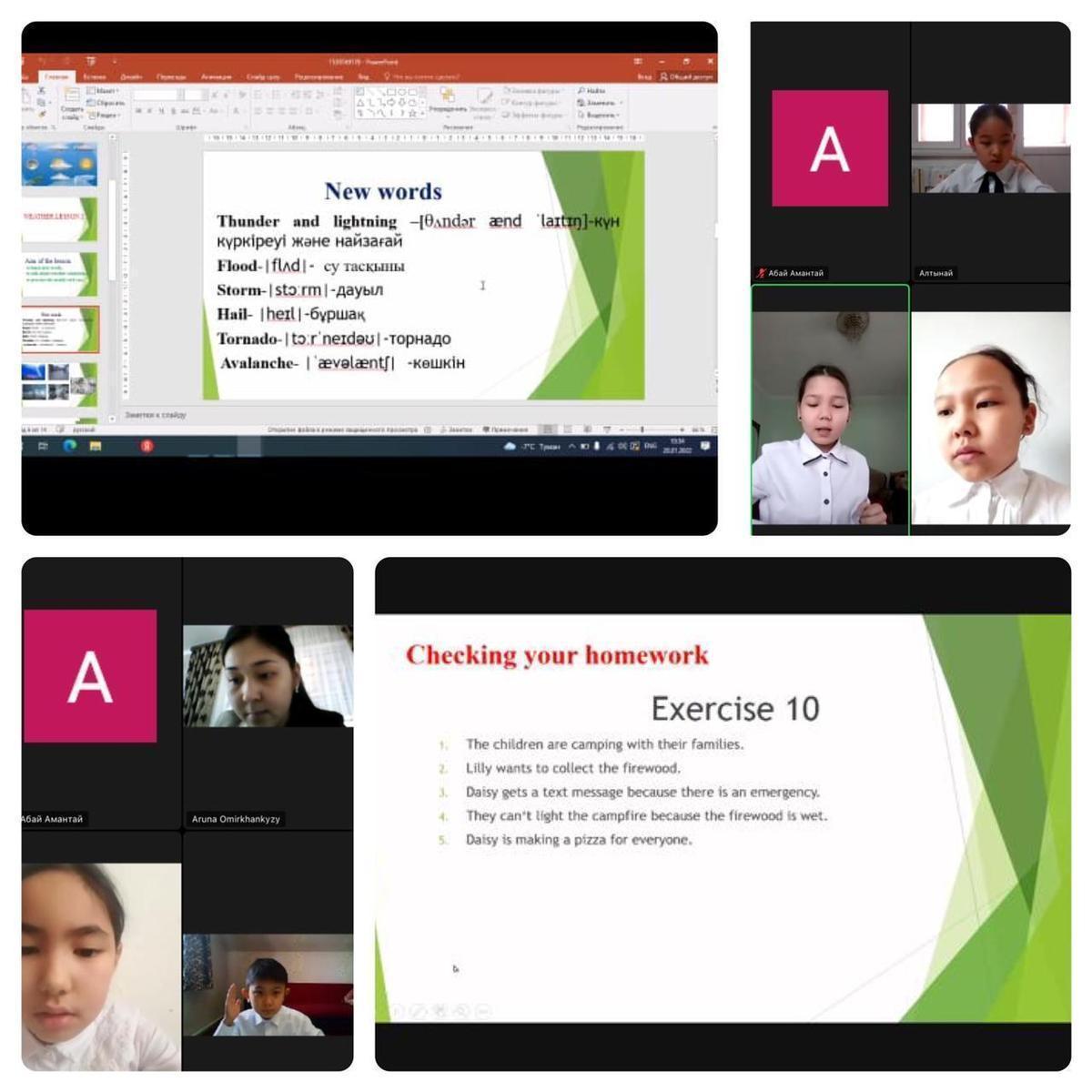 А. Қарсақбаев атындағы №41 жалпы білім беретін мектепте 28.01.2022 ж ағылшын тілі пәні мұғалімі Өмірханқызы Аруна 4 “Ә” сыныбына “Weather” тақырыбында ашық сабақ өтті.