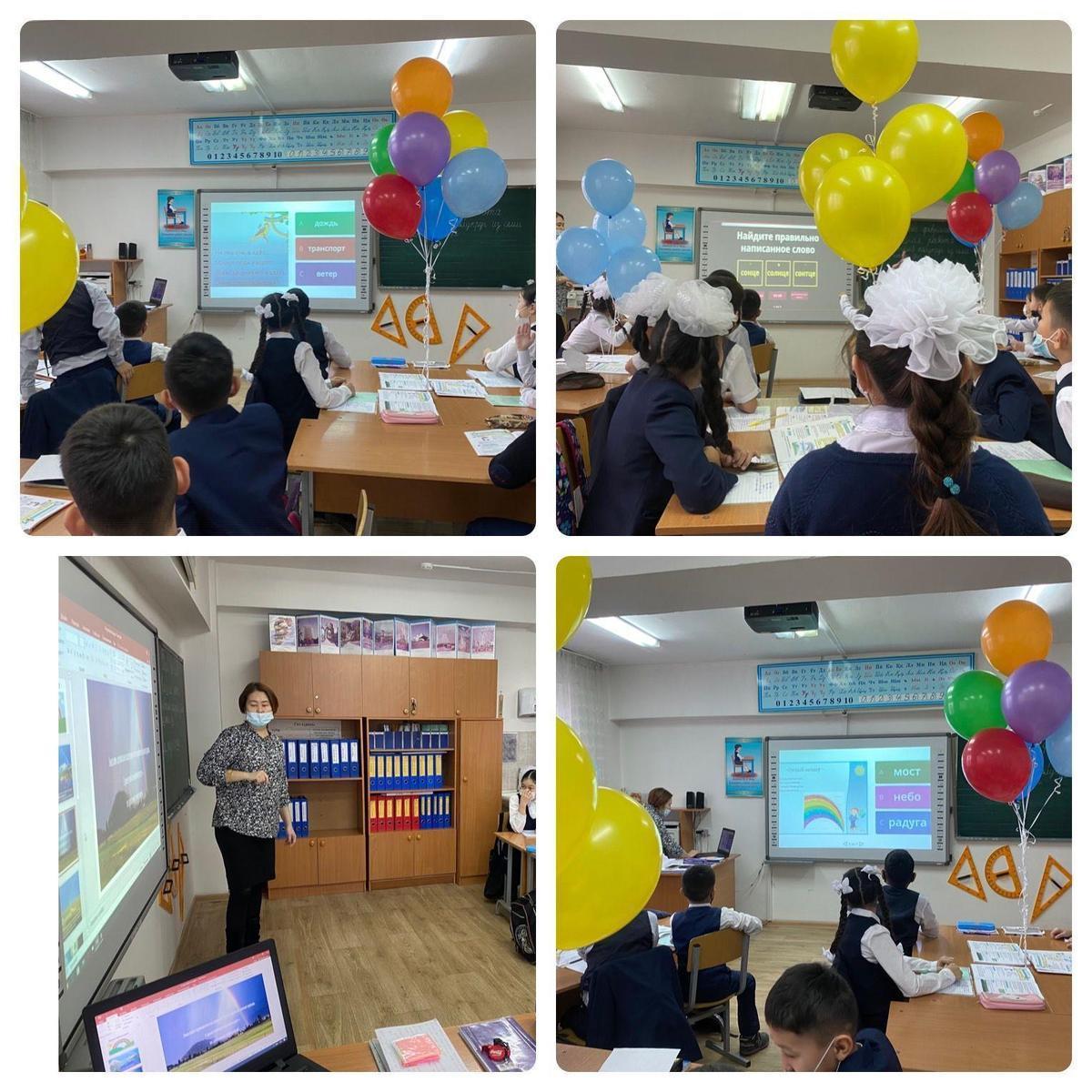А.Қарсақбаев атындағы №41 жалпы білім беретін мектепте 1.02.2022 ж орыс тілі мен әдебиеті пәнінің мұғалімі Туманова Ляззат 4 “З”сыныбына “Семицветный полукруг из семи широких дуг” тақырыбында ашық сабақ өтті.