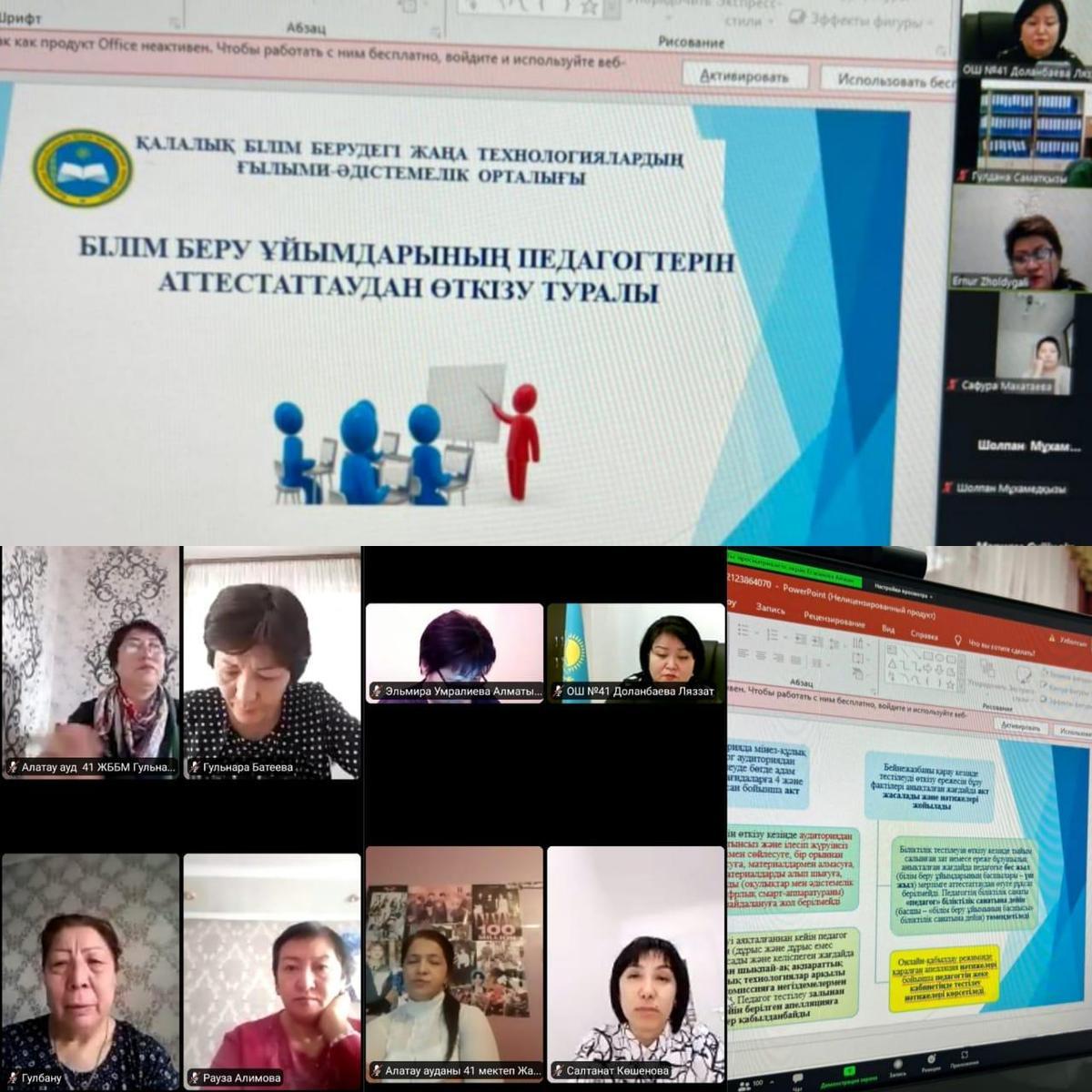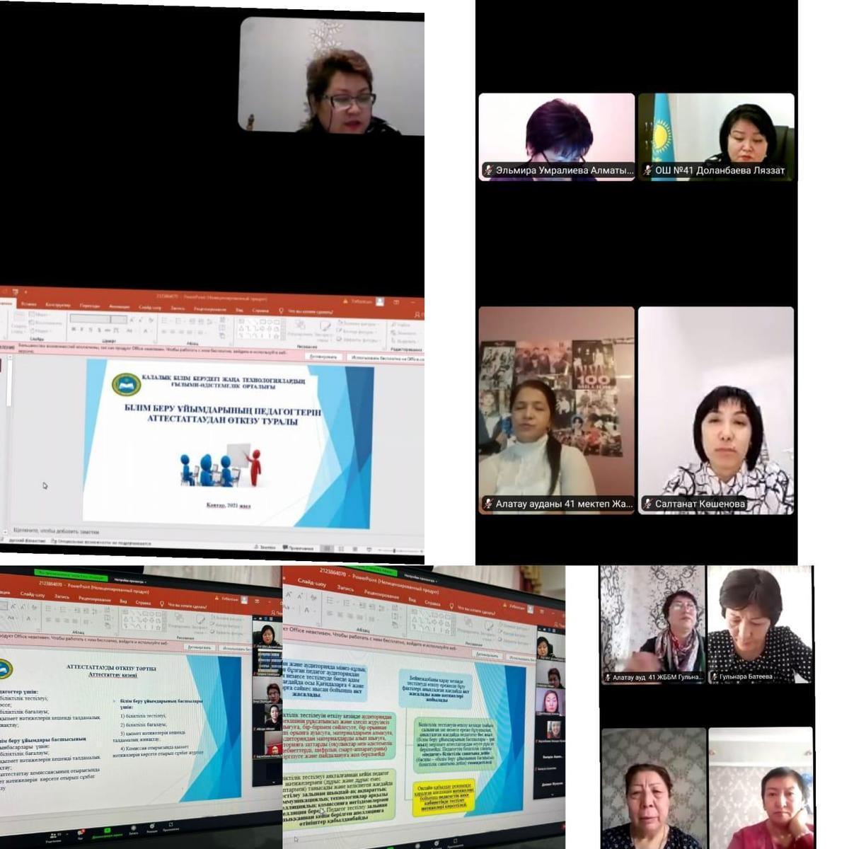 Алатау ауданы А.Қарсақбаев атындағы № 41 ЖББМ білім беру ұйымдарының педагогтерін аттестаттаудан өткізу туралы Қазақстан Республикасы Білім және Ғылым министрлігінің 2021жылғы 12 қарашадағы № 561 бұйрық бойынша жаңа форматта педагогтарды аттестаттауда өзгерістер енгізілгені туралы мектеп директоры Доланбаева Ляззат Бекбосыновна мен оқу ісі жөніндегі орынбасары Есжанова Айжан Есиркеповна ұжыммен жиналыс ашып, түсіндірмелі жұмыс жүргізілді.