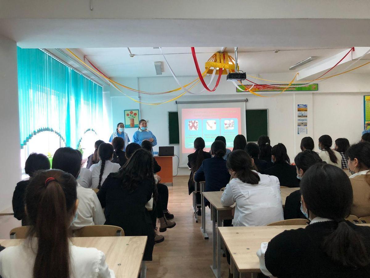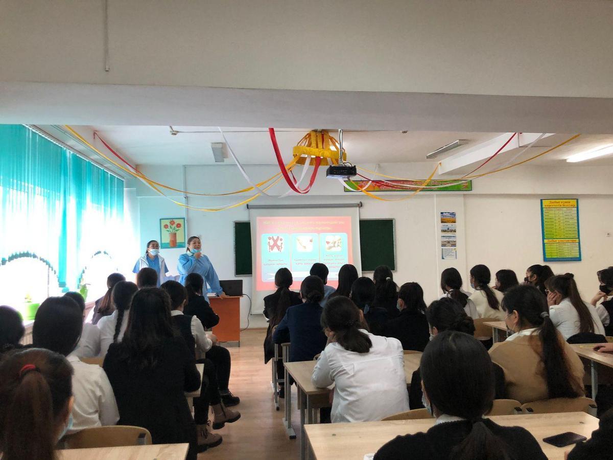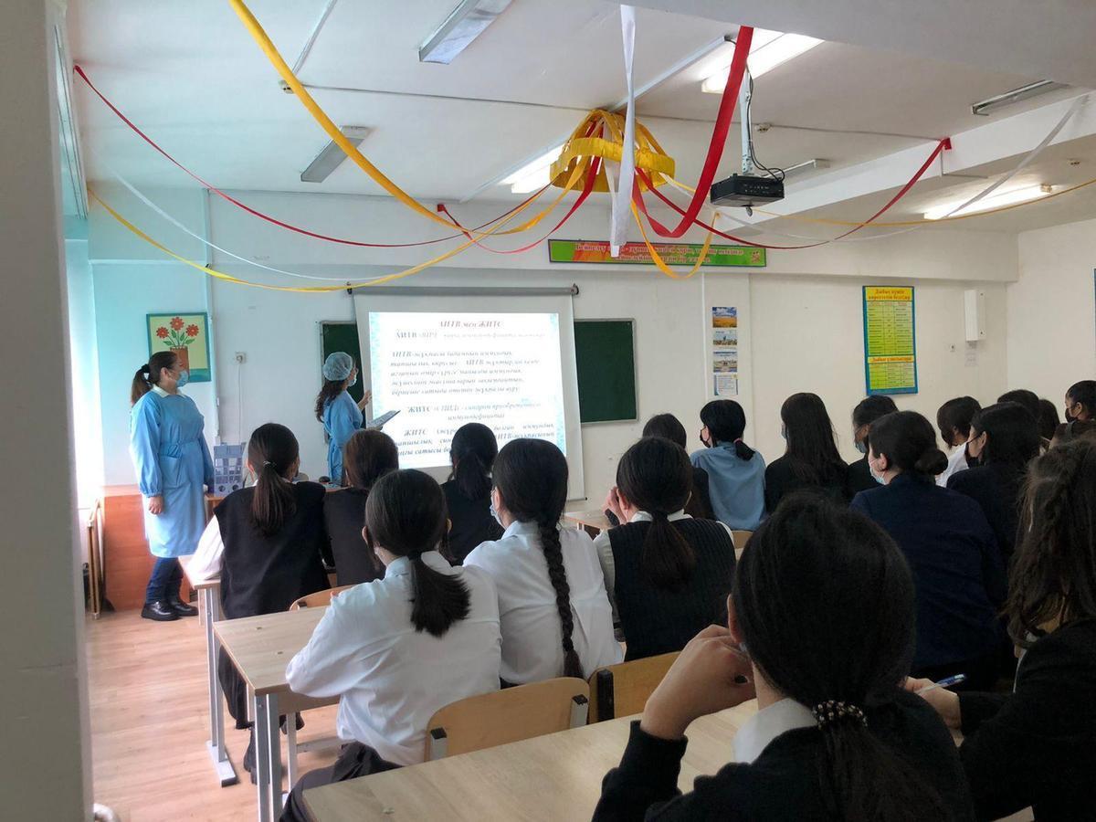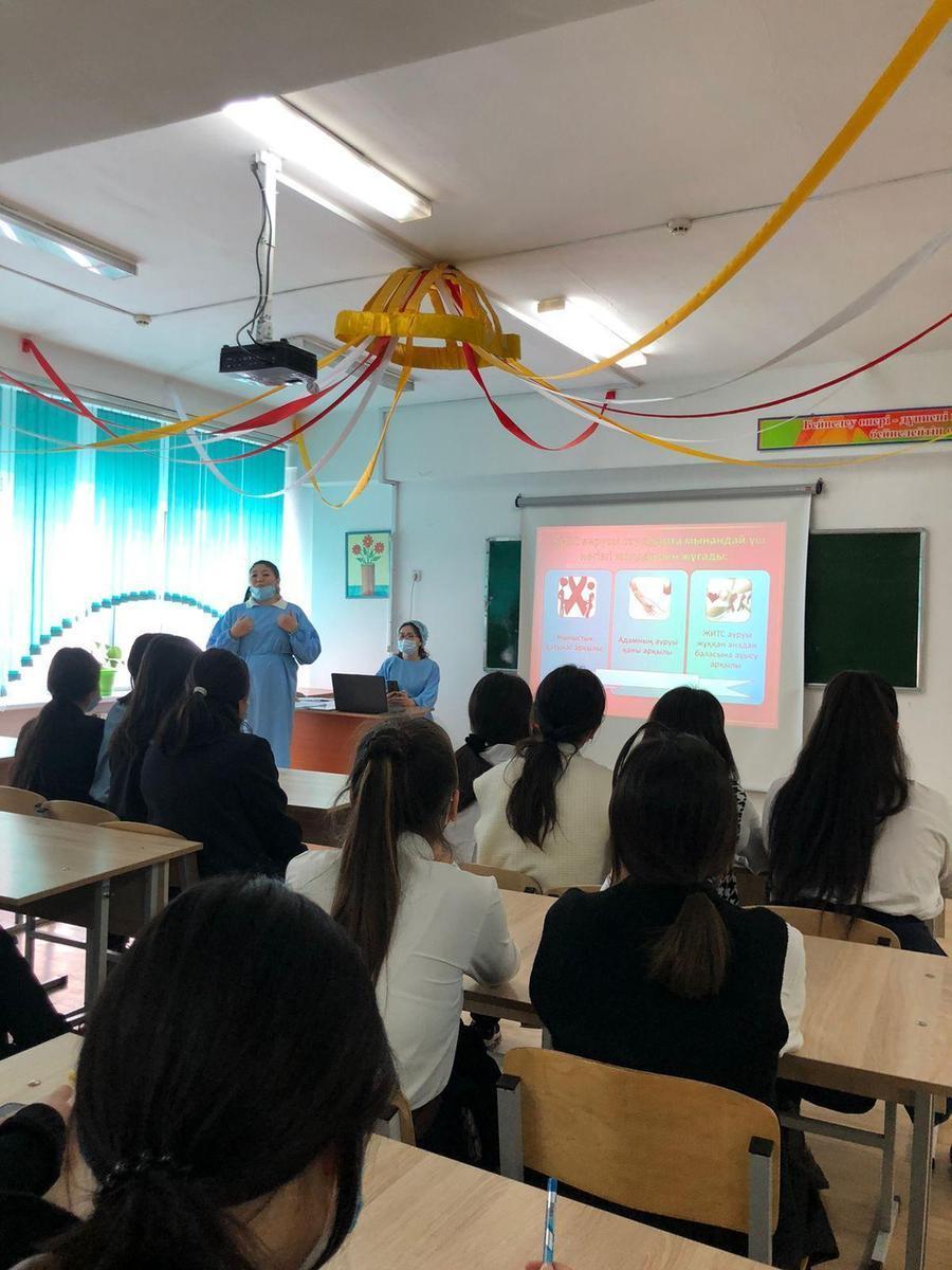 Мектебімізде 16.02.2022 ж күні 9-сынып білім алушыларына № 23 қалалық емханадан дірігерлер Р. Р. Абдрасулова, Б.Б. Жумаханова, Г.Ж. ұйымдастыруымен "АИТВ және ЖИТС" тақырыбында семинар өтті.