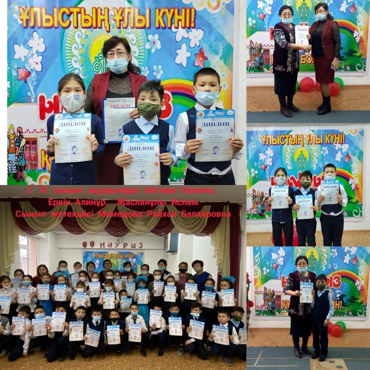 15 наурыз 2022 0 1 2 3 4 5 «ПОНИ» байқауына қатысып жүлделі орындар А.Қарсақбаев атындағы 41 ЖББ мектептің бастауыш сынып оқушылары халықаралық «ПОНИ» байқауына қатысып жүлделі орындарды жеңіп алды. Мақсаты: Оқушылардың дүниетанымын,тіл байлығын,білім-білік дағдыларын жан-жақты дамыту.