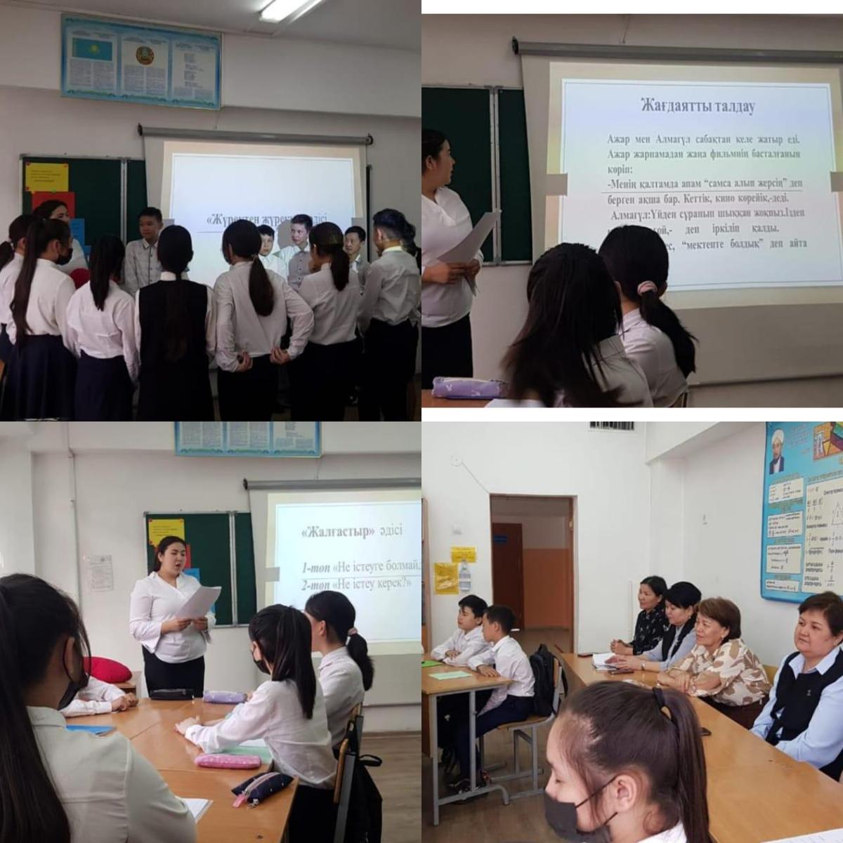 Жас маман сабақта жағдаятты талдау, "тыныштық сәті", "жалғастыр" , "жүректен жүрекке"әдістерін тиімді пайдалана білді. Сабақ жақсы өтті.