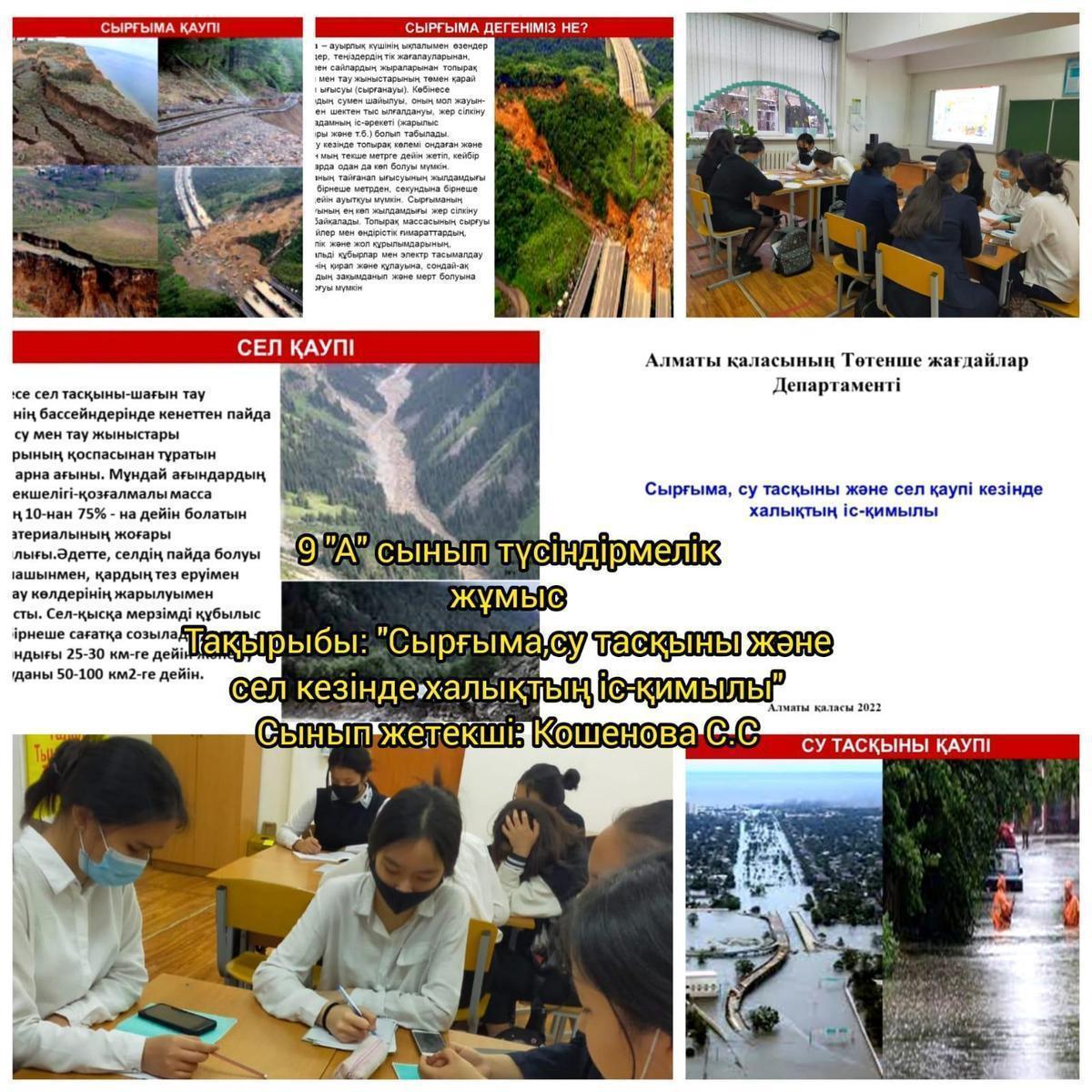 Алатау ауданы А.Қарсақбаев атындағы № 41 ЖББМ/КММ 2022 жылғы сәуірдің 12 күні 1-11 сынып оқушыларына « Сырғыма, су тасқыны және сел жүру кезіндегі ережелер» тақырыбында https://youtu.be/kTn4YhEnjK0 ,