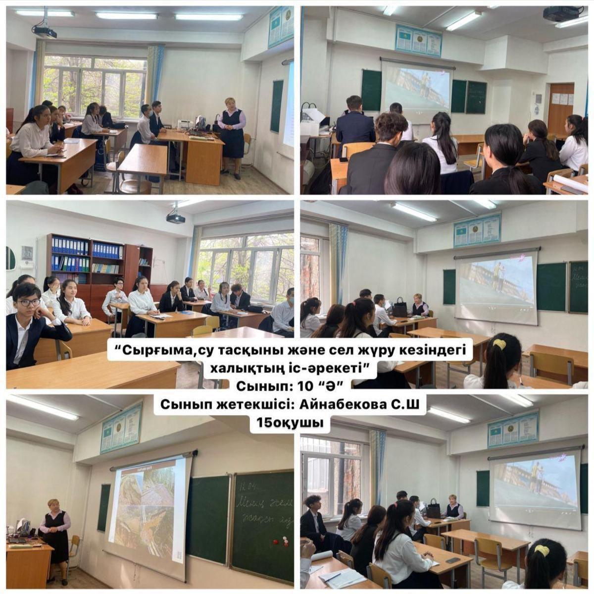 түсіндірмелі жұмыстар жүргізілді. 1-11 сынып оқушылар саны- 1285 , ал мұғалімдер саны- 120 қатысып сел жүру кезіндегі ережелер қауіпсіздіктерімен таныстырылды.