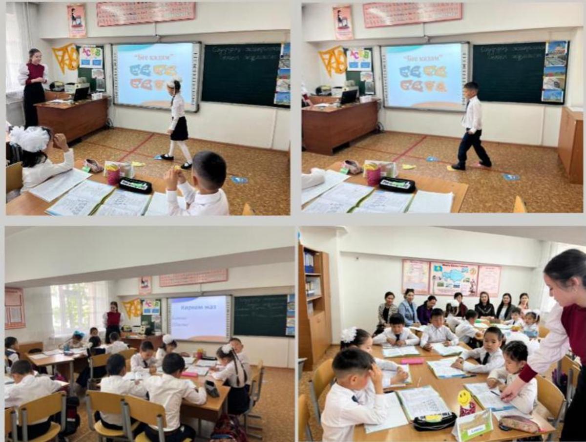Мұғалім сабақты "Менің көңіл - күйім" әдісі арқылы психологиялық ахуал қалыптастырумен бастады. Қала аттарын пайдалана отырып, топқа біріктірді. Өткен тақырып пен жаңа тақырып арасындағы байланысты “Бес қадам” әдісі арқылы жасады. Оқушыларға топтық тапсырмалар орындатып, кітаппен, дәптермен, тақтамен жұмыстарды жасатты. Сабақ барысында "Қарындаштар" әдісі, "Ашық микрофон" әдістерін тиімді қолданды.