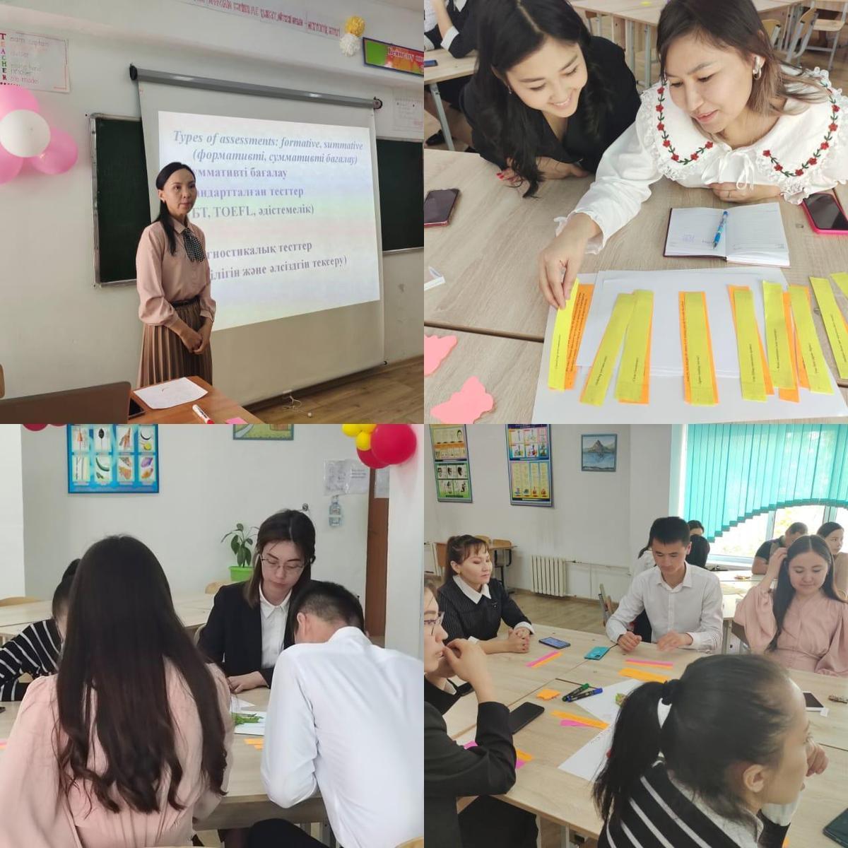 Тәлімгер қатысушыларды топқа біріктіріп, жаттығуларды орындату арқылы тақырыпты жіті түсіндірді, күнделікті сабақ жоспарында қолданылатын: миға шабуыл, жаттығулардың түрлері, ресустар, бағалаудың түрлері, кері байланысты тереңінен үйретті, жаттығулар орындатып, жас маманның ой-елегінен өткізді.