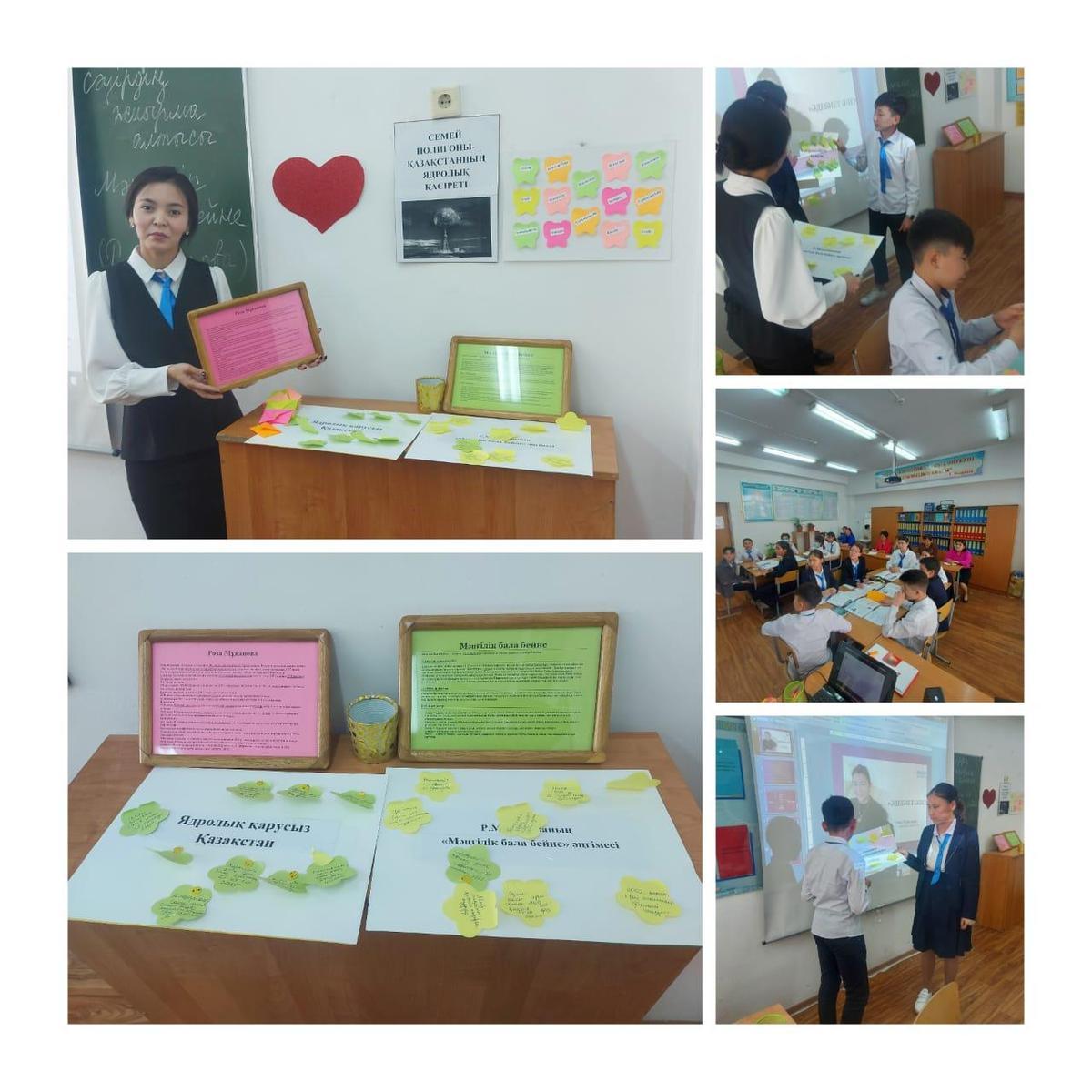 А.Қарсақбаев атындағы №41 жалпы білім беретін мектебімізде «Әдебиет – халықтың айнасы» атты онкүндіктің аясында қазақ тілі мен әдебиеті пәнінің мұғалімі Айдана Шарипханова 8«Д» сыныбымен «Мәңгілік бала бейне» әңгімесі атты тақырыпта ашық сабақ өтті.