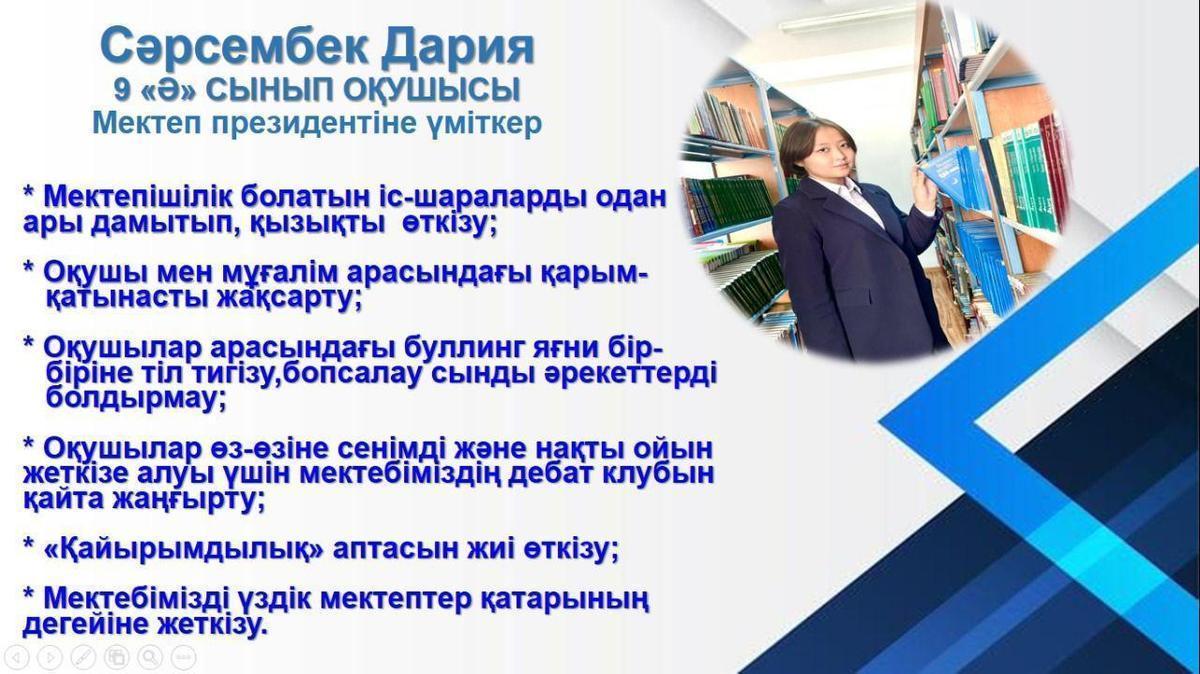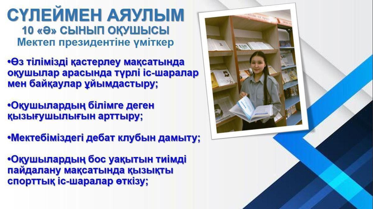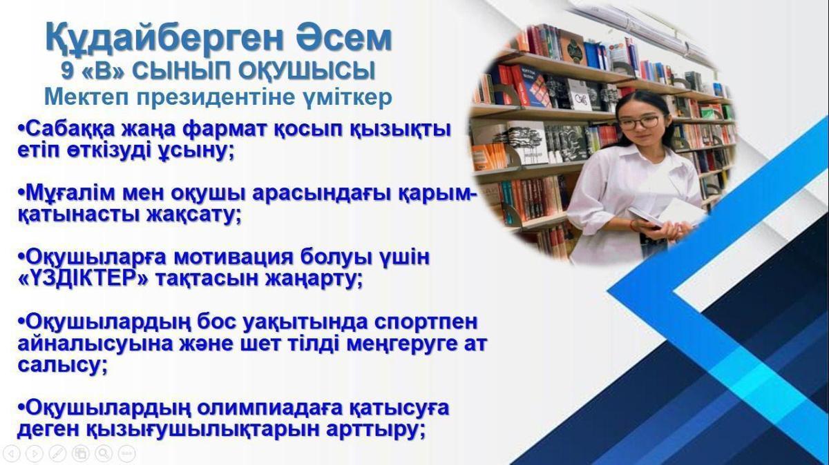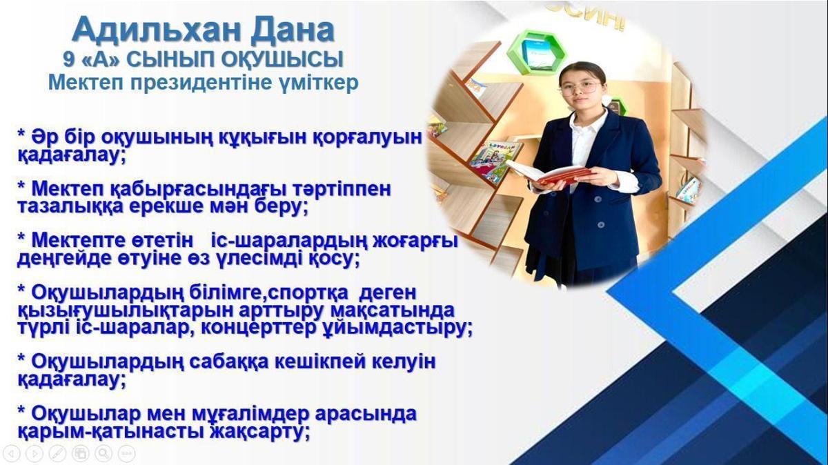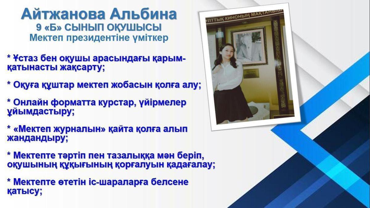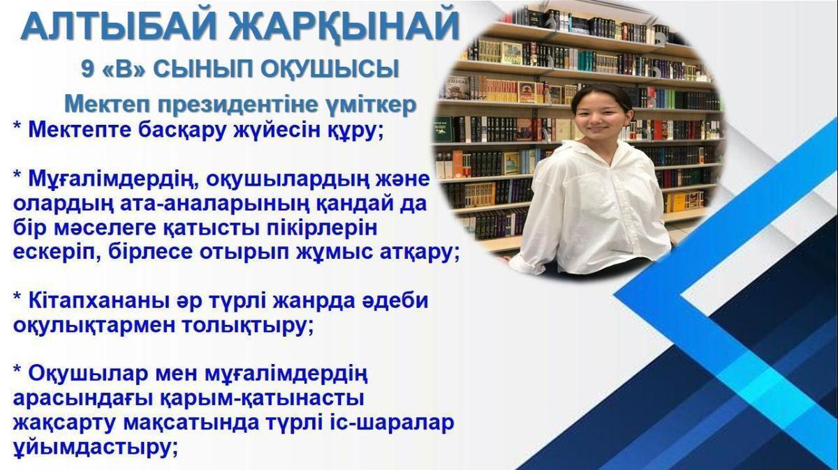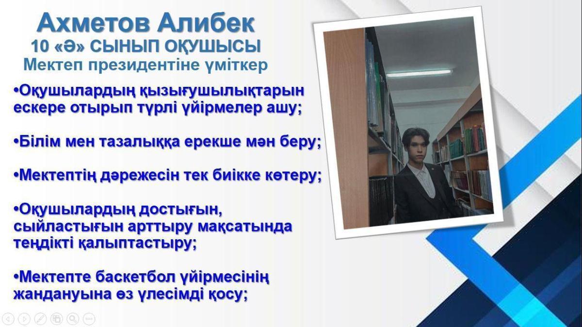 Құрметті мектеп оқушылары мен ұстаздары!!! 19.09.2022 жылы мектебімізде “Мектеп президентін” сайлау өтетінін хабарлаймыз🔊🔊🔊 ☑️Барынша ат салысып дауыс беруге қатысыңыздар✅✅✅ 🔹“МЕКТЕП ПРЕЗИДЕНТІ”оқушылардың өзін-өзі басқару ұйымының сайлауына өз кандидаттығын ұсынған оқушыларымыз🔷💯