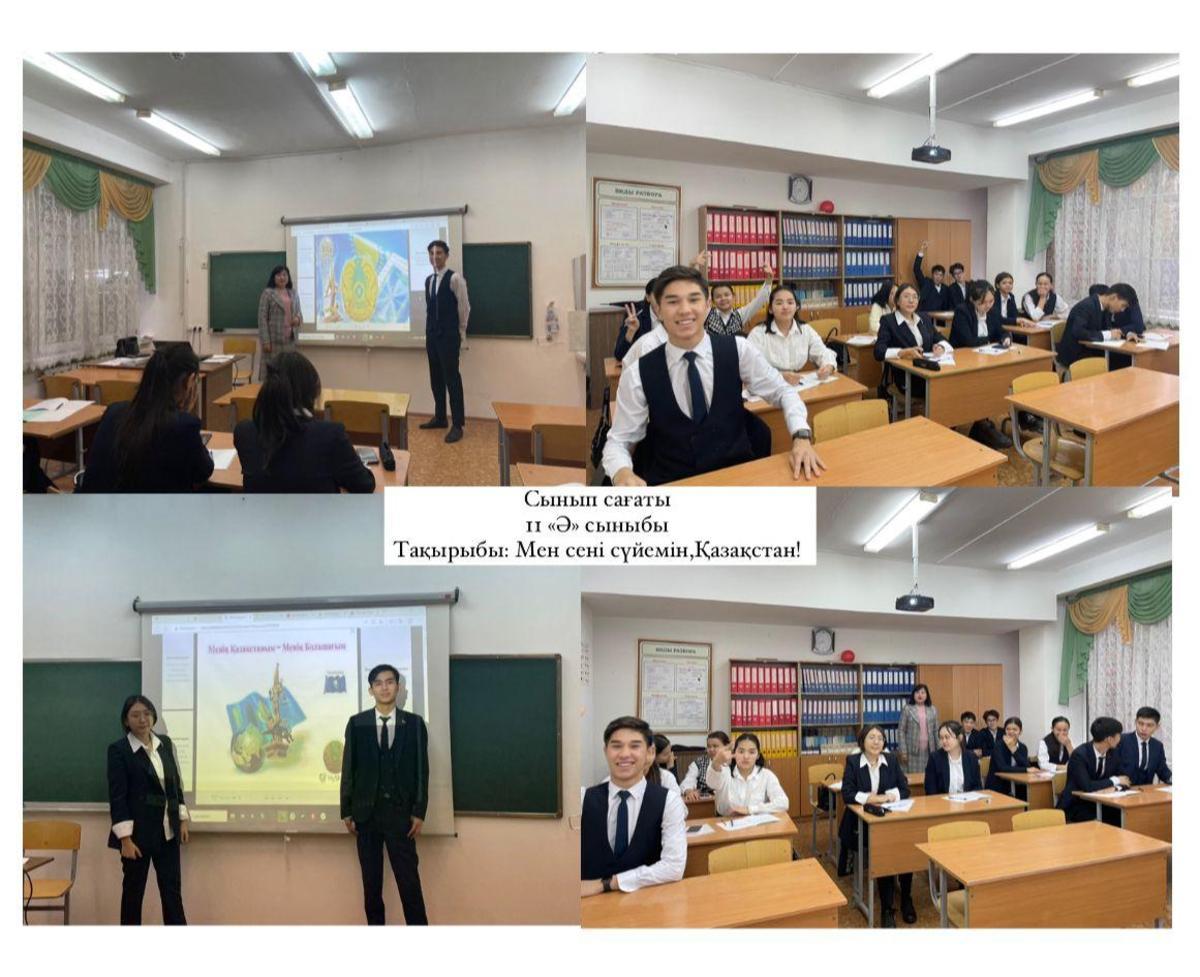 Мектебімізде 18.10.2022 ж күні 1-11 сыныптарға "Мен сені сүйемін-Қазақстан" тақырыбында сынып сағаты өтілді. Мақсаты: Оқушыларға еліміздің тарихи белестері туралы баяндай отырып, патриоттық сезімін ояту. Отансүйгіш, елін мақтаныш ететін ұрпақ тәрбиелеу.