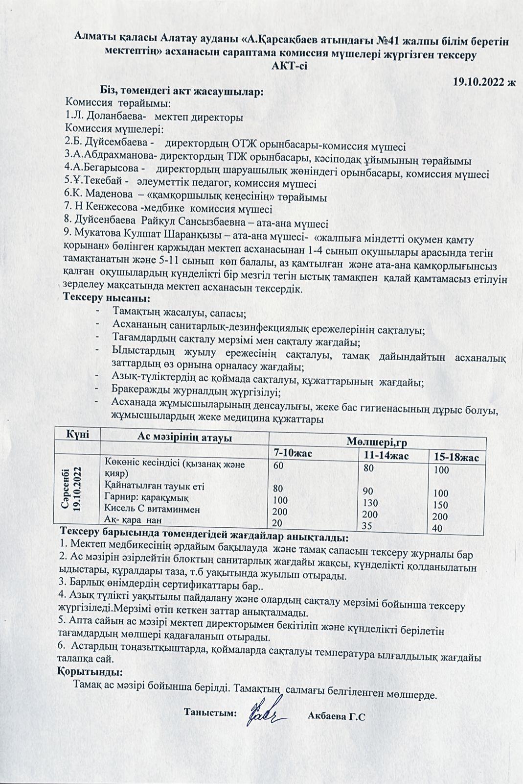Сараптама комиссиясының тексеру АКТ-сі 19.10.2022 жыл