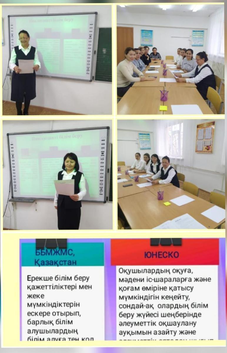 Мақсаты:Мұғалімдерді ерекше білім беруді қажет ететін оқушылармен жұмыс істеу әдісімен таныстыру.