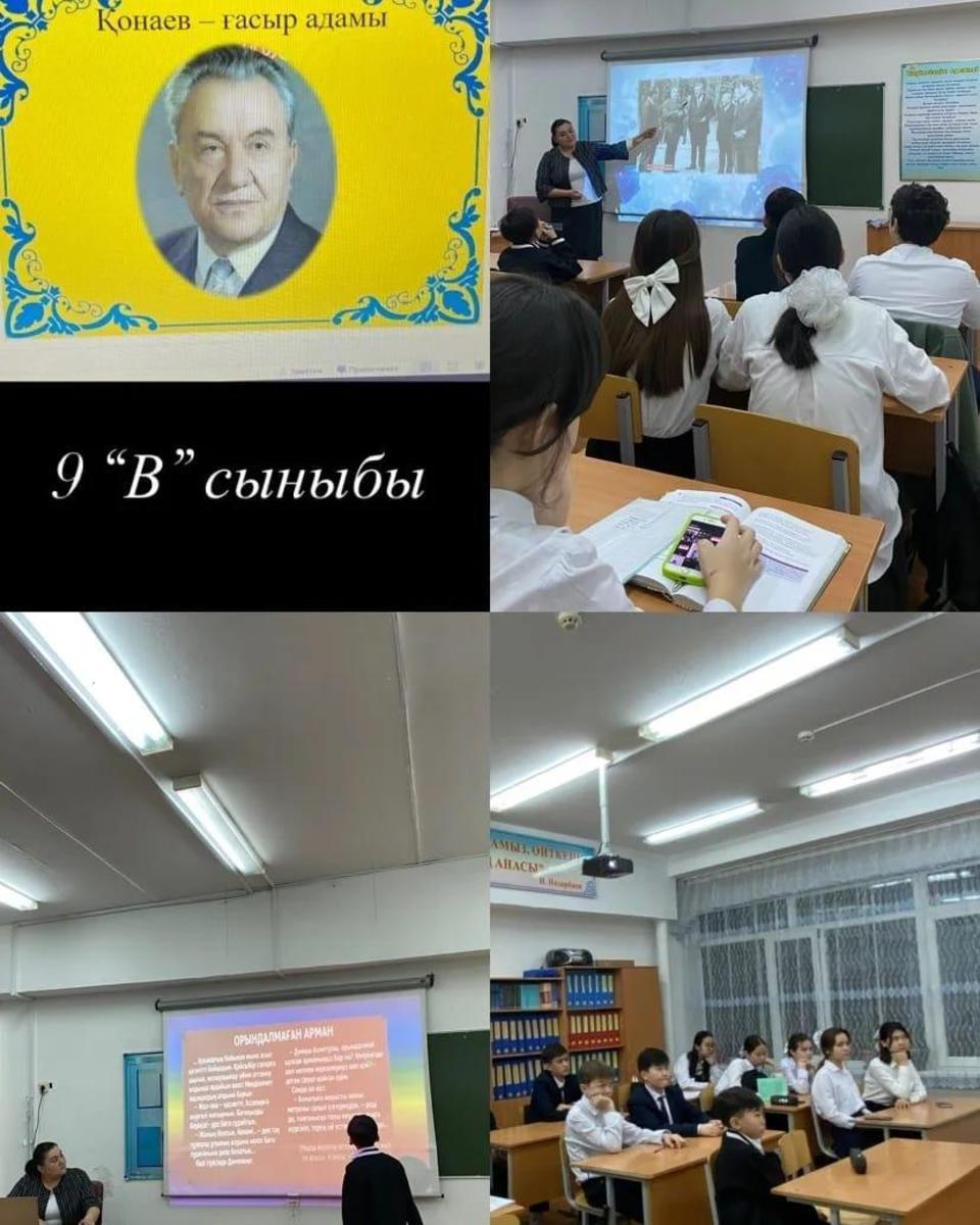 «Қонаев - ғасыр адамы» тақырыбында 1-11 сынып білім алушыларына тәрбие сағаты өтілді.