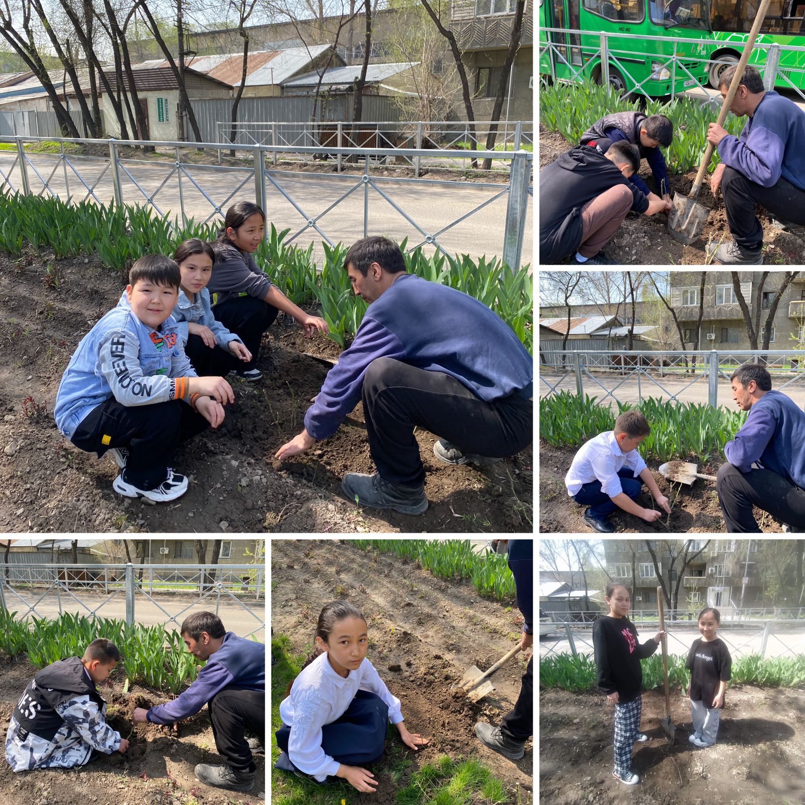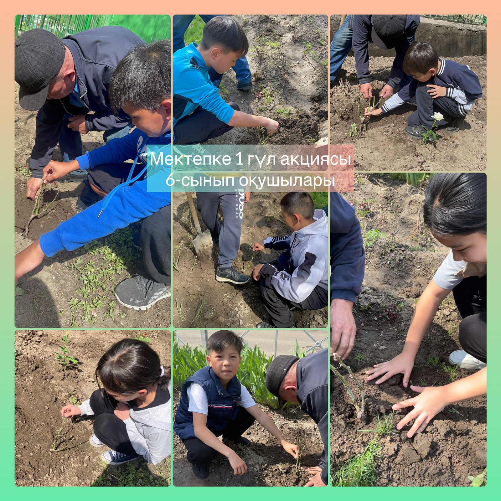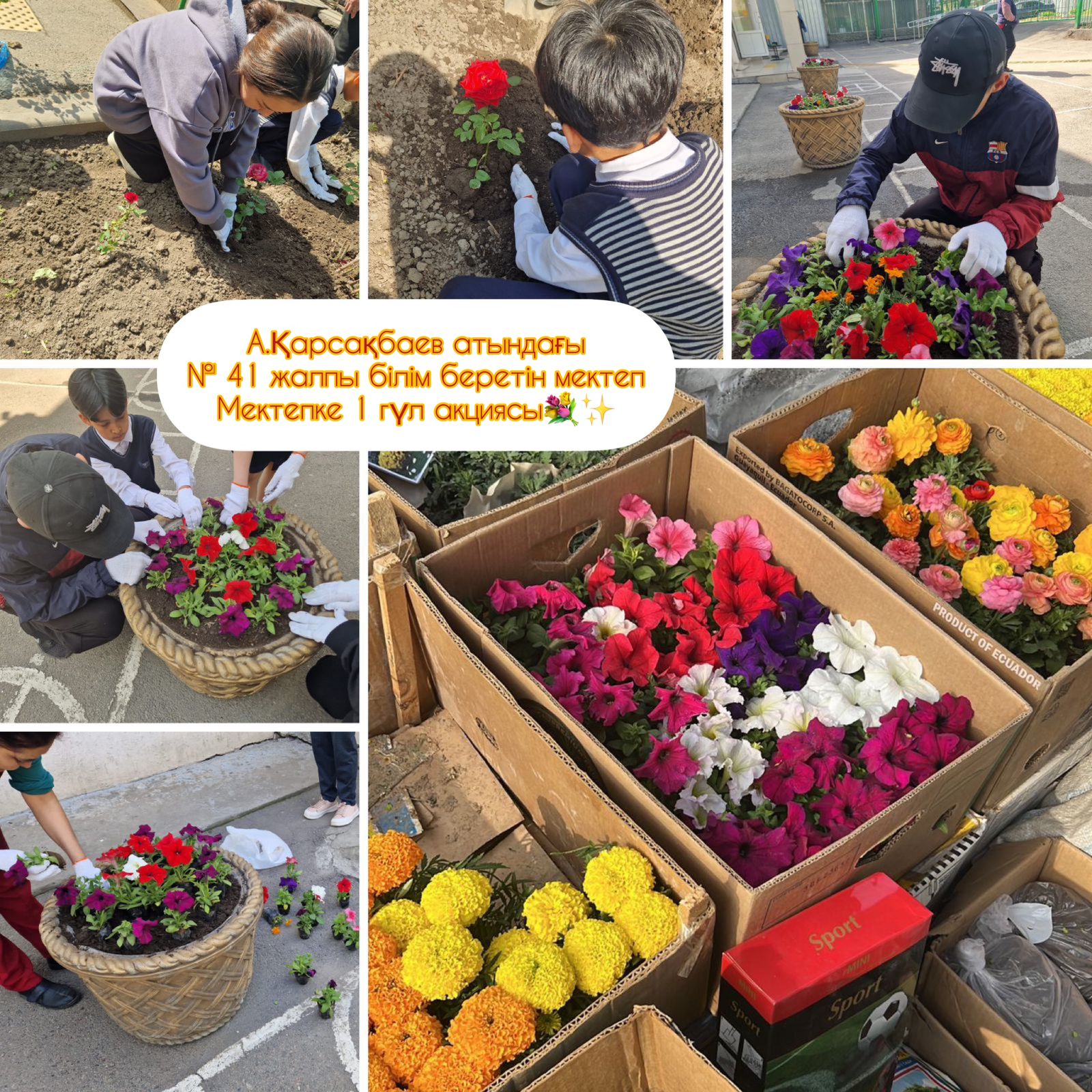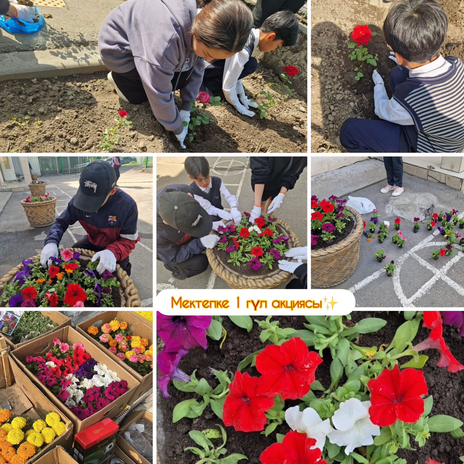 Бүгін мектебімізде 1-11 сынып оқушылары арасында "Мектепке 1 гүл” атты акция ұйымдастырылды.Мақсаты:Гүл өскен ортада тазалық пен бірліктің, жақсылық пен жарқын болашақтың болары сөзсіз. Сондықтан өсімдіктер дүниесінің ең маңызды бөлігі - адамзат өміріне сән беретін, гүлге деген оқушы сезімін ояту. Оқушылардың өсімдік жайындағы білімін кеңейтіп, өлке өсімдігін тануға, зерттеу және пайдасы туралы танымдық ойлау қабілетін дамытуға, оларды күтіп баптауға тәрбиелеу.