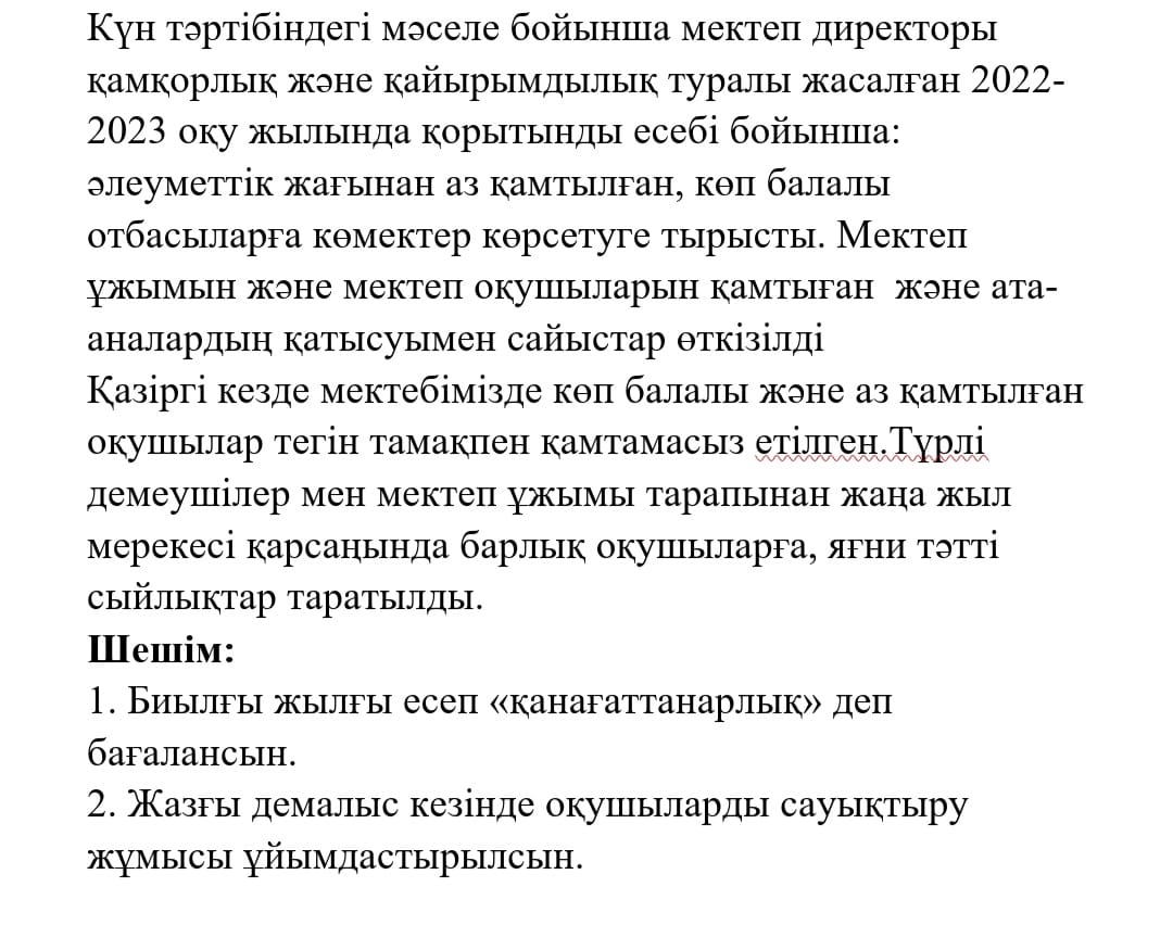 25 мамыр 2023 0 1 2 3 4 5 Қамқоршылық кеңесінің отырысы Мектебімізде Қамқоршылық кеңесінің кезекті жиналысы өтті.