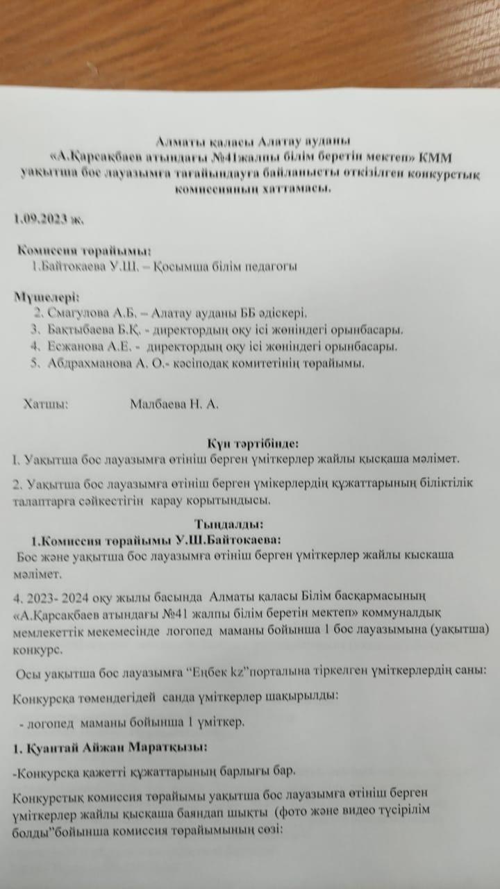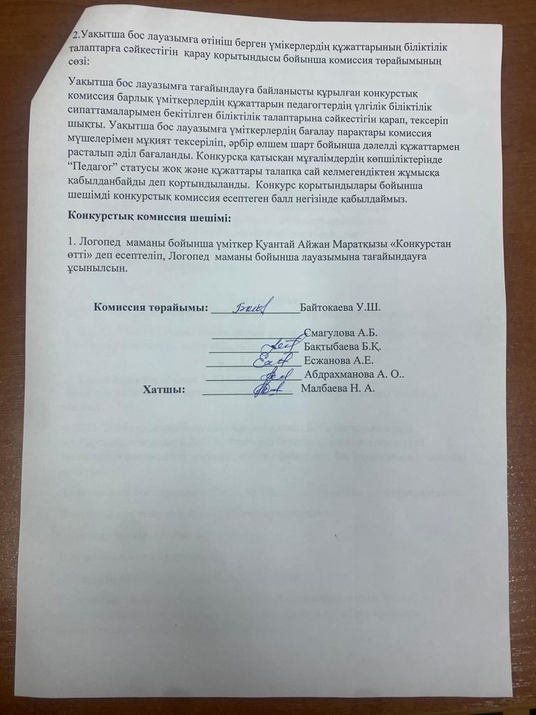 Конкурстық комиссия хаттамасы!