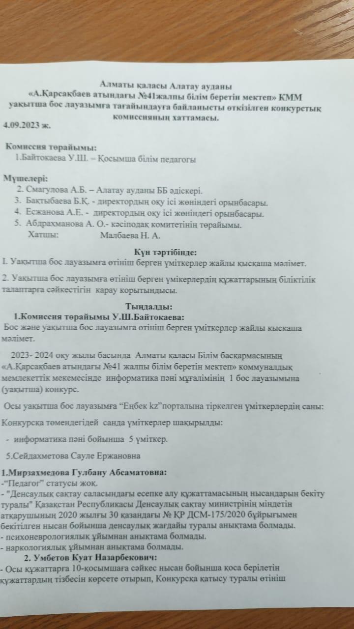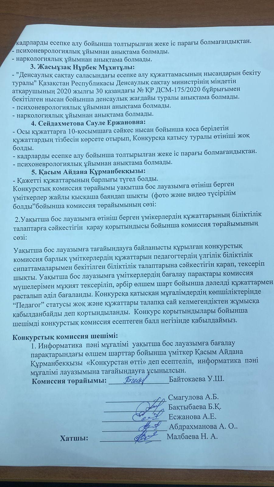 Конкурстық комиссия хаттамасы!