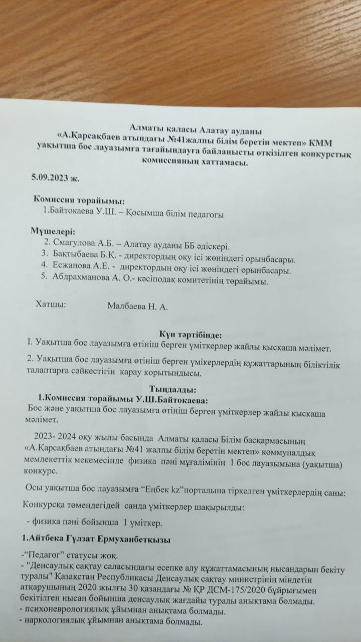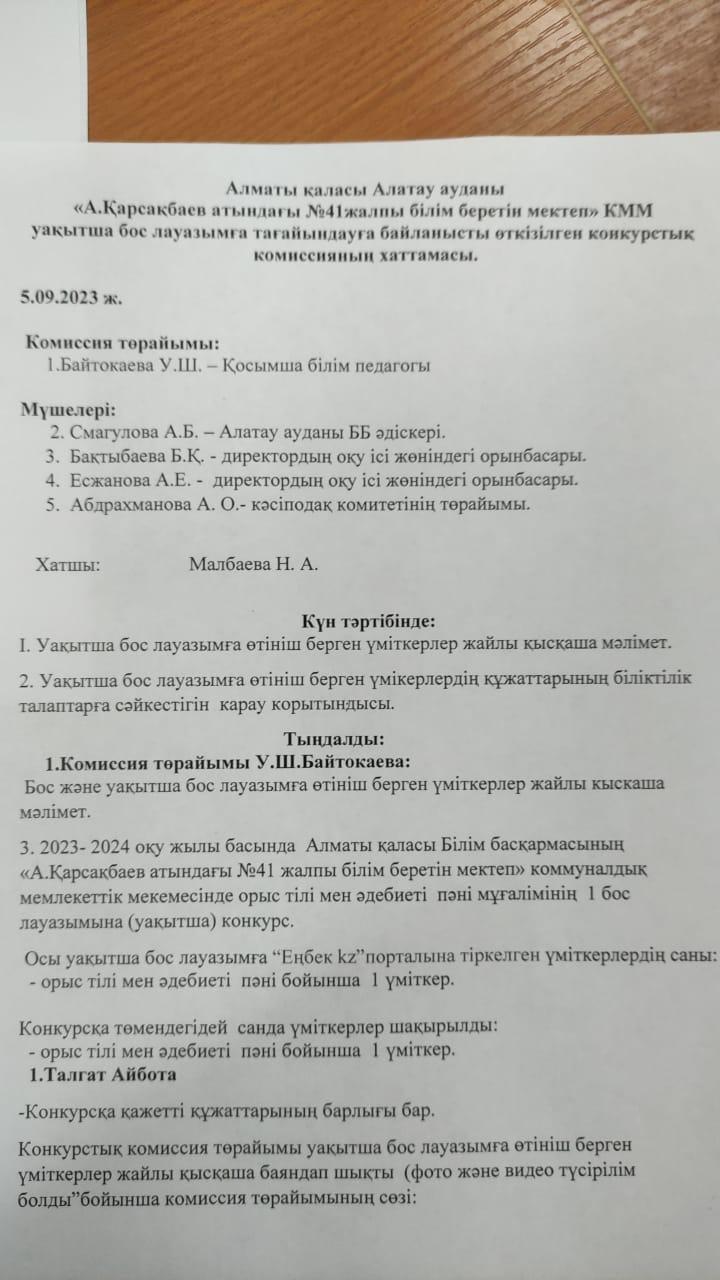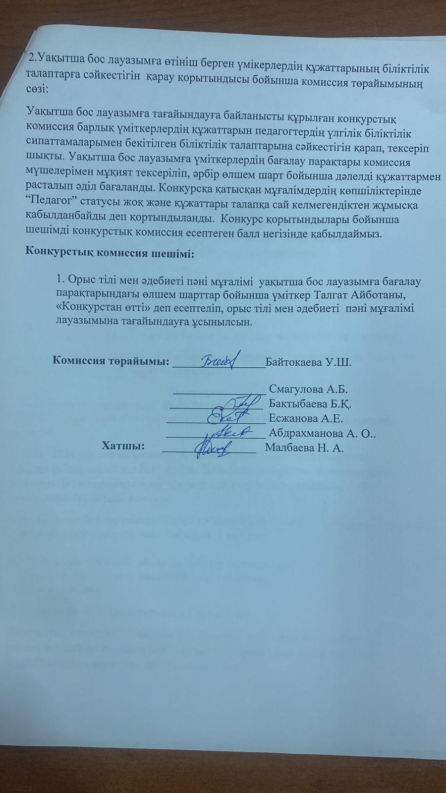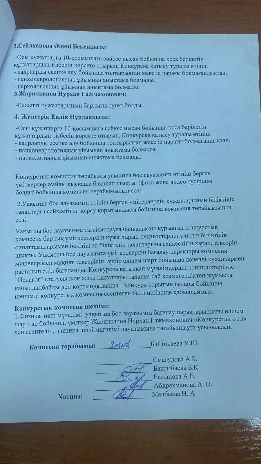 Конкурстық комиссия хаттамасы!