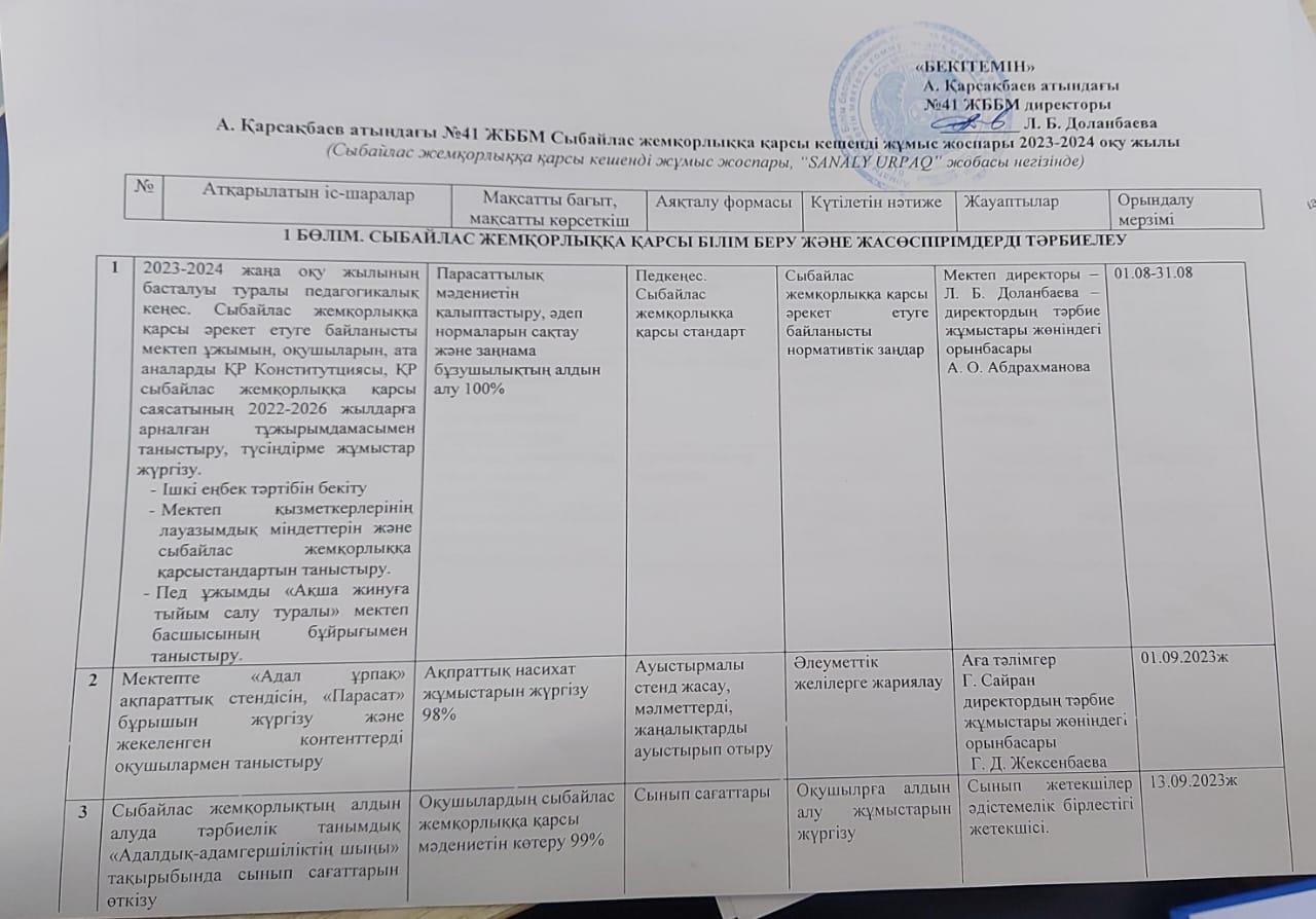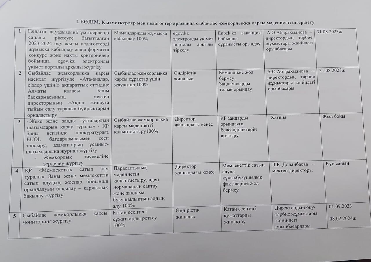Сыбайлас жемқорлыққа қарсы кшенді жұмыс жоспары