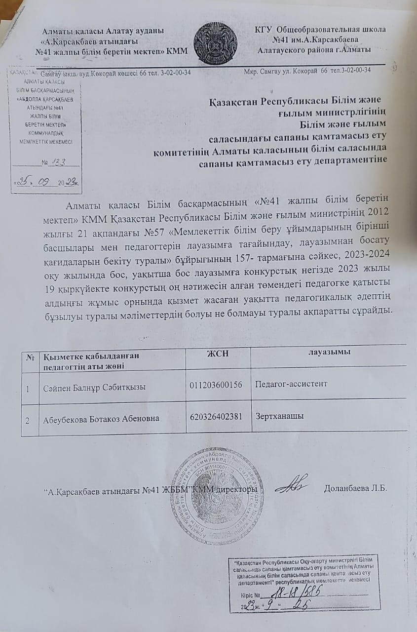 №41 жалпы білім беретін мектеп