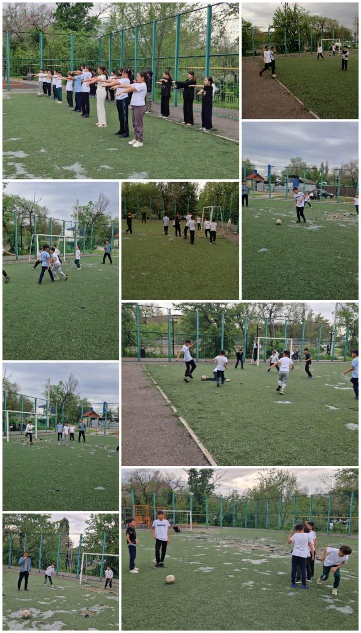 дене шынықтыру пәнінің мұғалімдері Сатымбеков Д., Раимов М. 25.04. күні 5-6 сыныптарарасында ашық жарыс сабақ өткізді. Тақырыбы: «Футбол. Шабуылда ойнау техникасы».