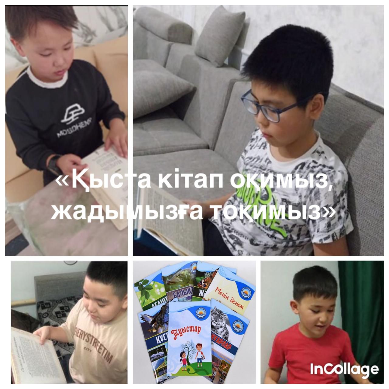 №41 жалпы білім беретін мектеп » Ақпарат » "Қыста кітап оқимыз" атты кітап оқу жобасы жалғасын табуда. Мектебіміздің 1-5 сынып білім алушылары қысқы демалыста әртүрлі қызықты оқиғаға толы кітаптарды оқыды