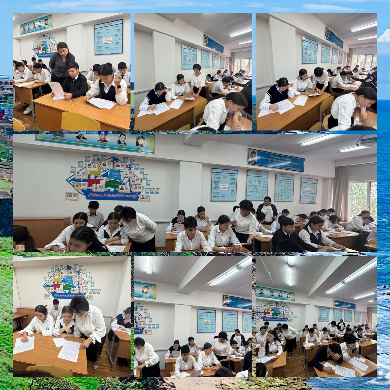 26 мамыр 2025 жылы 8-сынып оқушыларынан қазақ тілі пәнінен (эссе) жазбаша емтихан алынды. Оқушылар формамен, кешікпей толық келді. Емтиханды гимн айтудан бастадық. Пән мұғалімдері эссе жазу ережелерін түсіндіріп өтті.