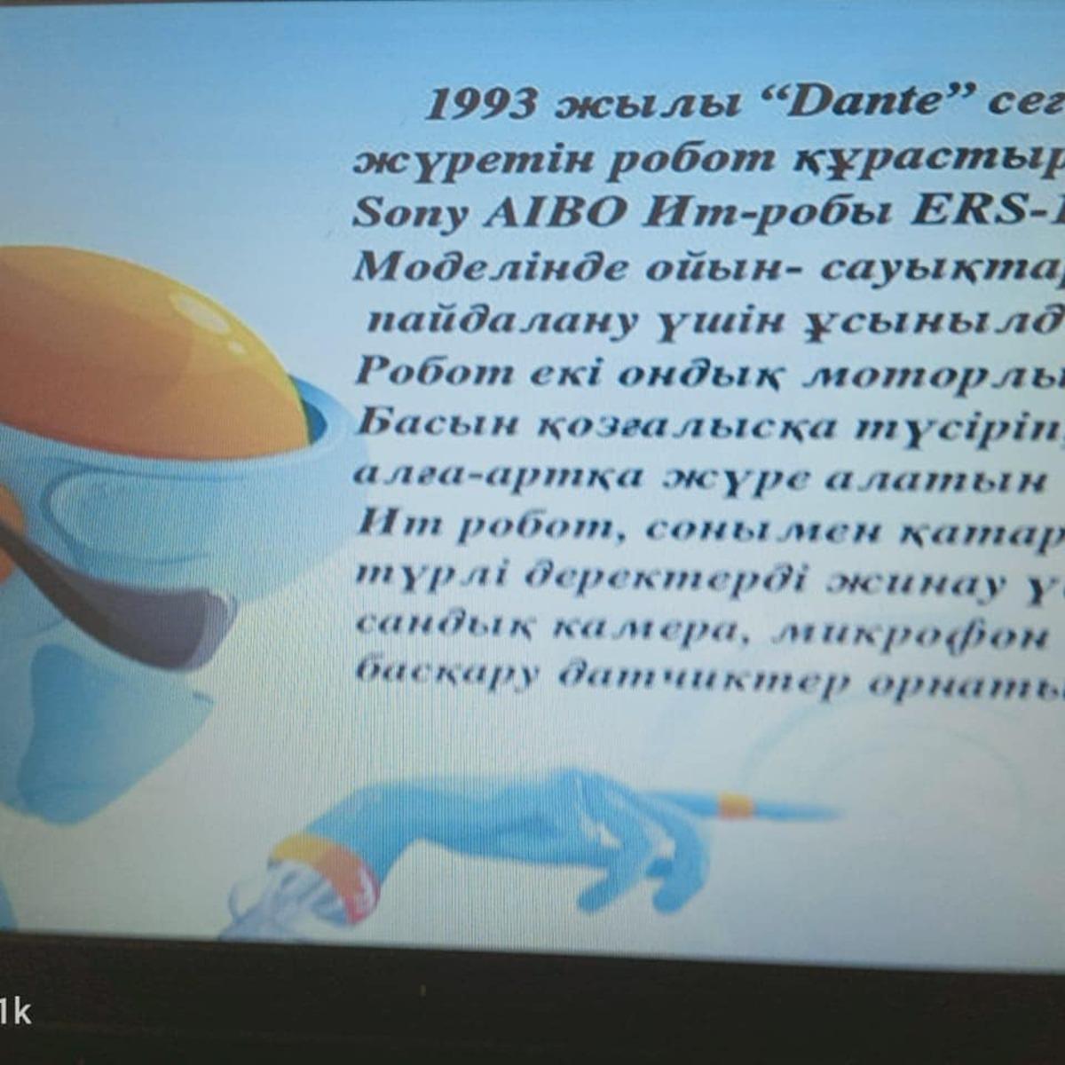 "А.Қарсақбаев атындағы №41 ЖББМ" КММ-де 11.11.2020 ж күні ғылыми техникалық іс-шара жүргізілді. "Алғашқы роботтардың пайда болуы мен тарихы" атты тақырыпта онлайн тренинг өтілді.