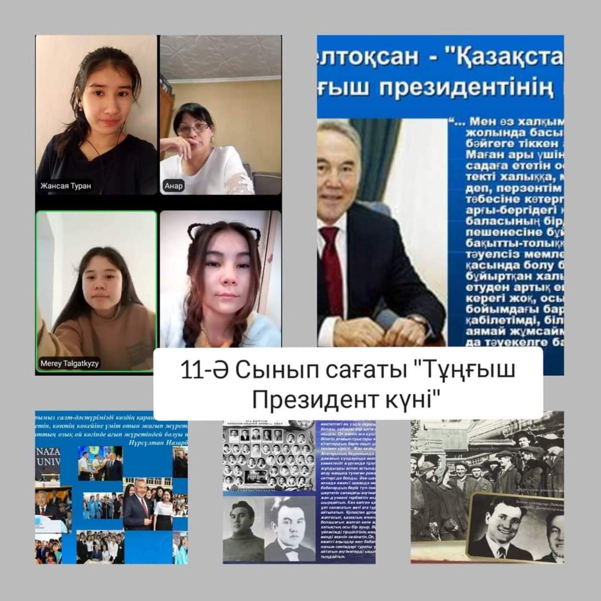 Мақсаты: «1-желтоқсан-Тұңғыш Президент күні» мерекесінің мәнін ашу, Нұрсұлтан Әбішұлы Назарбаевтың өмір жолы, туып өскен, оқып білім алған, қызмет еткен жерлері туралы мағлұмат беру; Елбасындай Отанын, халқын сүюге, нағыз азамат, шынайы патриот болуға тәрбиелеу;оқушылардың бойында Елбасына деген сүйіспеншілік, құрмет сезімін қалыптастыру;