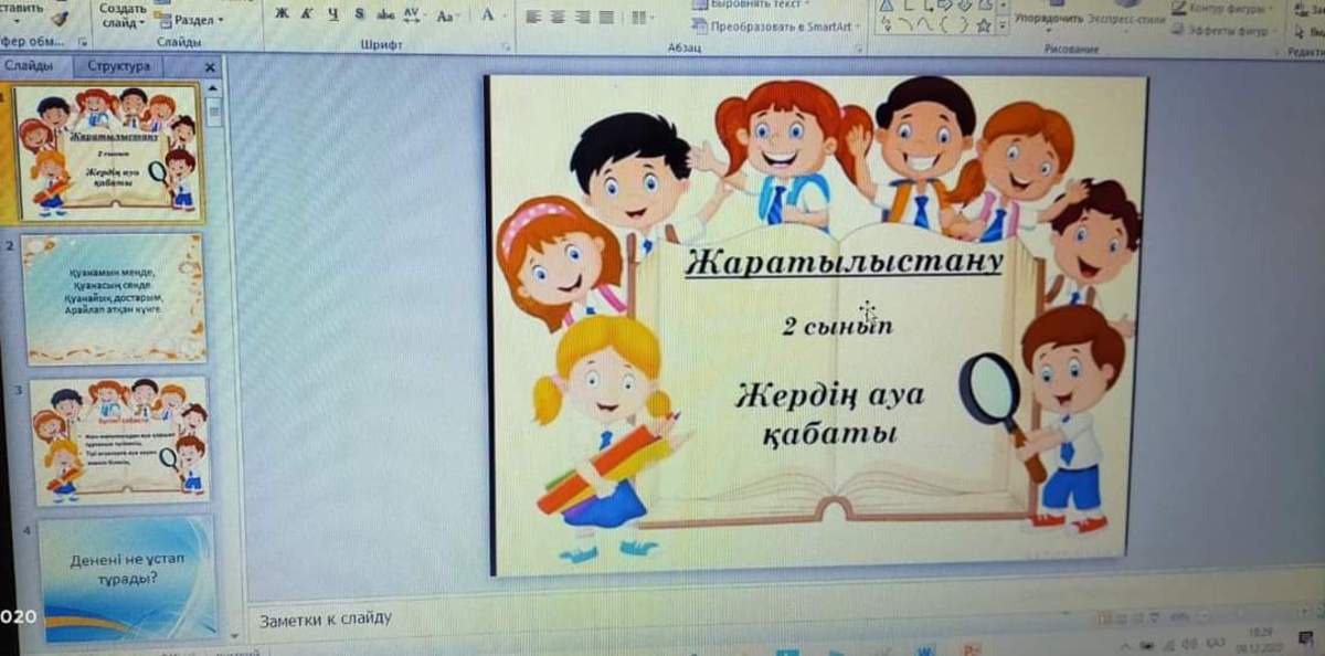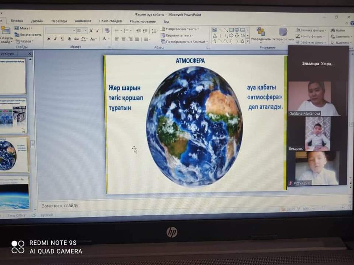 09.12.2020 ж күні 2"Е" сынып жетекшісі Мойтанова Гулдана Кенесбекқызы жаратылыстану пәнінен "Жердің ауа қабаты" тақырыбында "ZOOM" платформасы арқылы үлгілі ашық сабақ өткізді. Сабақ мақсаты: оқушыларға жан-жағымыздан ауа қоршап тұратынын және тірі ағзаларға ауа керек екенін түсіндіру.