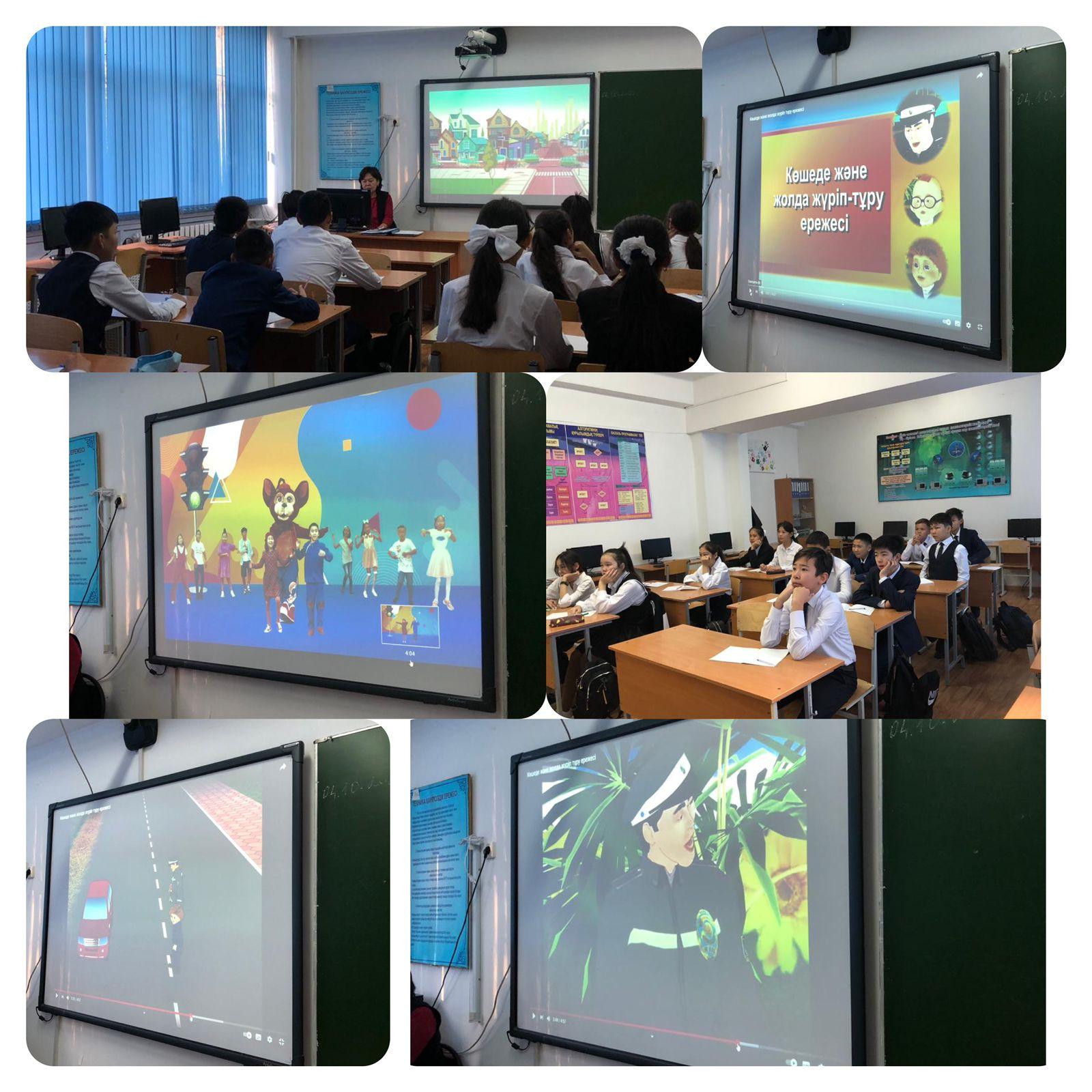03.10. 2022 ж күні 1-8 сынып оқушыларына "Қозғалысты реттеу нысандары", "Аялдау жолы және қозғалыс жылдамдығы", "Көлік құралдарының аялдау жолы" тақырыптарында сынып жетекшілері әңгімелер мен түсіндірмелі жұмыстарын жүргізді. Мақсаты: Жол қауіпсіздігін, өз өмірлерін сақтай білуге тәрбиелеу, оқушылардың ой — өрісін, сана – сезімін, өзін — өзі ұстауын, көшеде дұрыс жүріне түсінік беру.